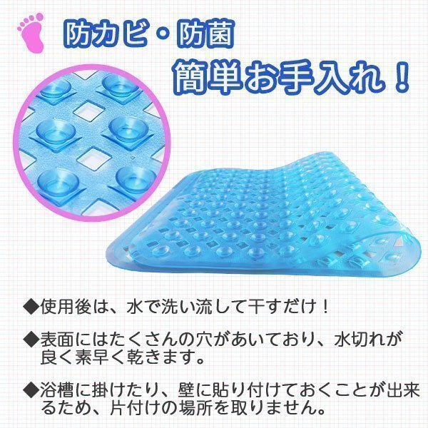 洗い場の床や浴槽に張り付く吸盤がマットのズレをしっかり防ぎます。