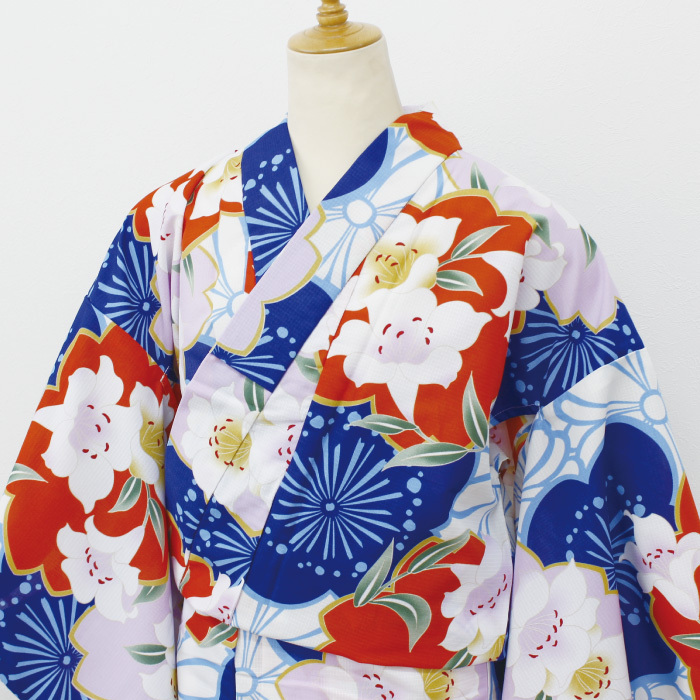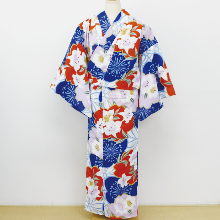 お仕立て上がり 浴衣肌触りの良いさらりとした素材! ポリエステル素材なのでシワになりにくく、ご家庭でも気軽にお洗濯できます。仕立て上がりなので、届いたらすぐにお使いいただけます。フリーサイズ155~165cm位の方身丈 : 約163cm裄 : 約67cm袖丈 : 約49cmポリエステル100%
