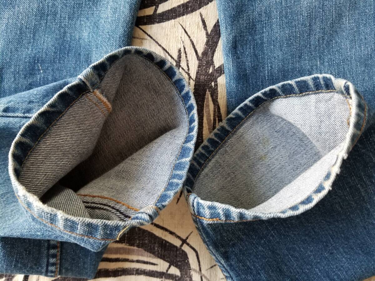 右膝辺りに、擦れによる解れあり。7cm程の穴空きダメージが伺えます。