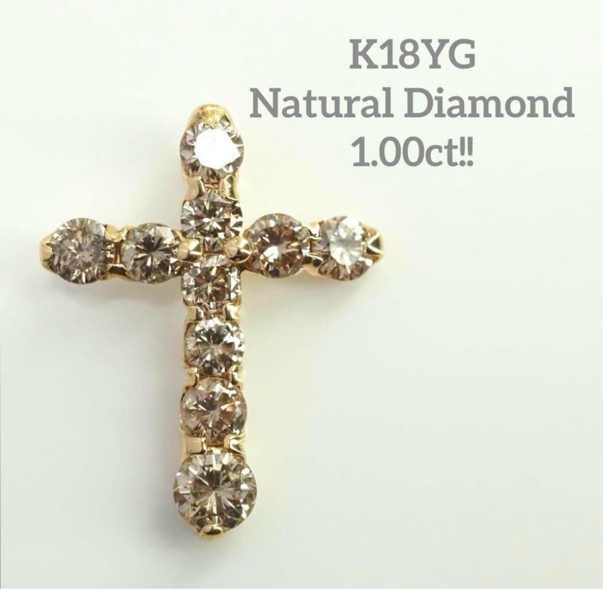 D1.00ct!クロス 十字架 K18YG 天然ダイヤモンドペンダントトップ vvv