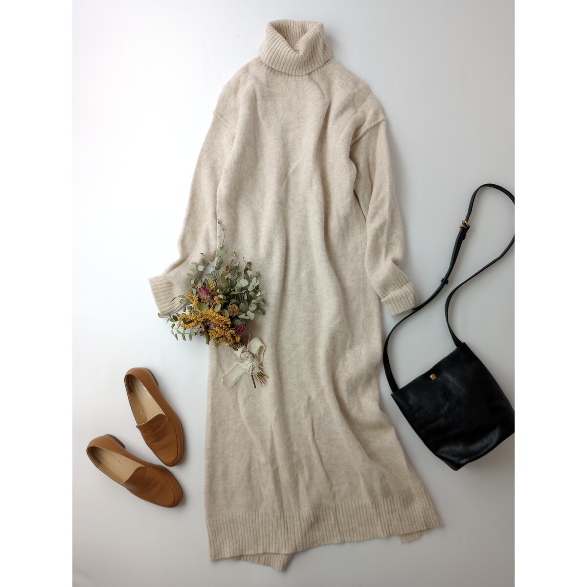 Sonny Label サニーレーベル「パパッと完成!」タートルネック ニット ワンピース ロング ウール アンゴラ 混 ベージュ(25M+7123)☆★