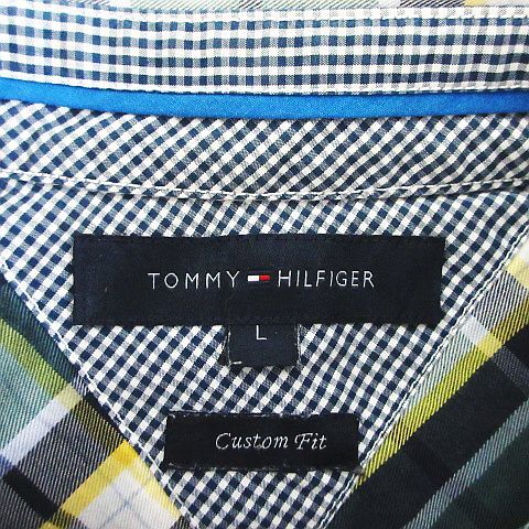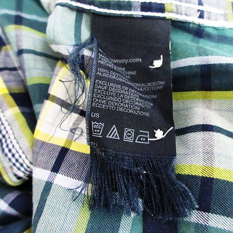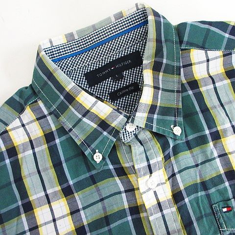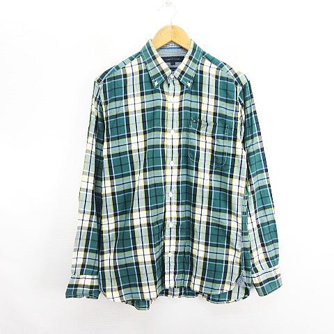 トミーヒルフィガー TOMMY HILFIGER シャツ 長袖 ボタンダウン チェック 胸ポケット ロゴ コットン L グリーン系 ※EKM メンズ