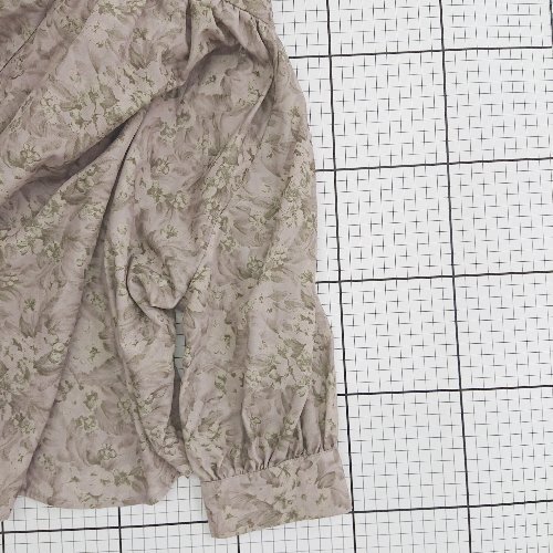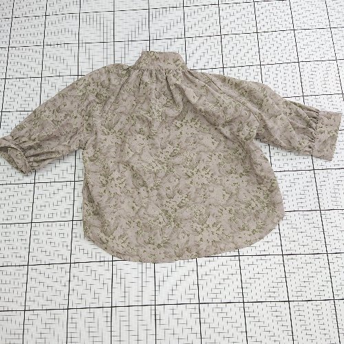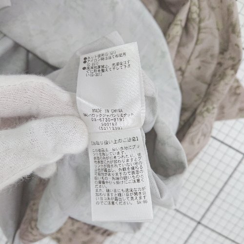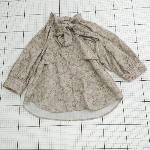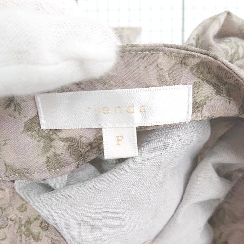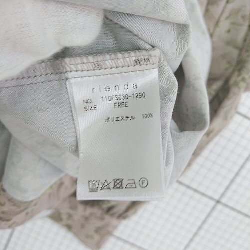 ◇ ⊂ rienda リエンダ 柄入り 半袖 半袖シャツブラウス サイズF グレー グリーン系 レディース E
