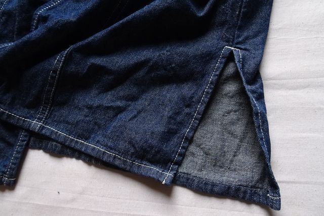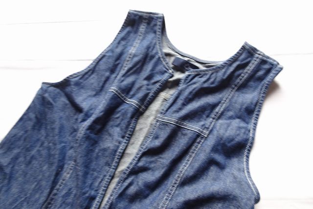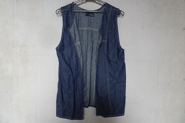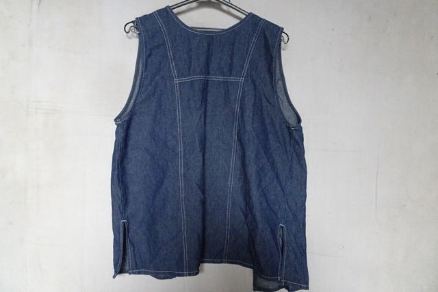 LOGOS DAYS/ロゴスデイズ/ベスト/ジレ/デニム風素材/前留めなし/白ステッチ糸/裾サイドスリット/インディゴブルー/Lサイズ(9/18R7)