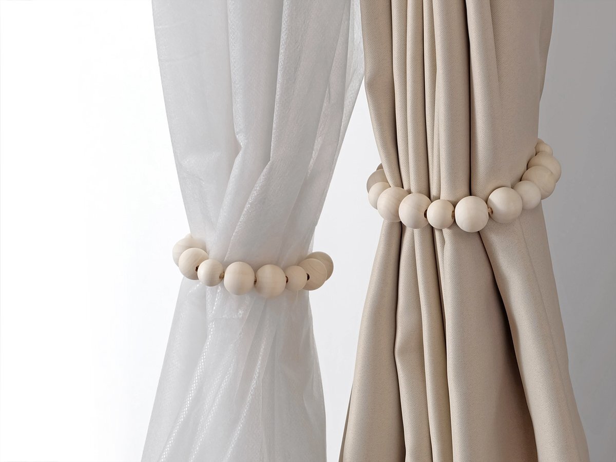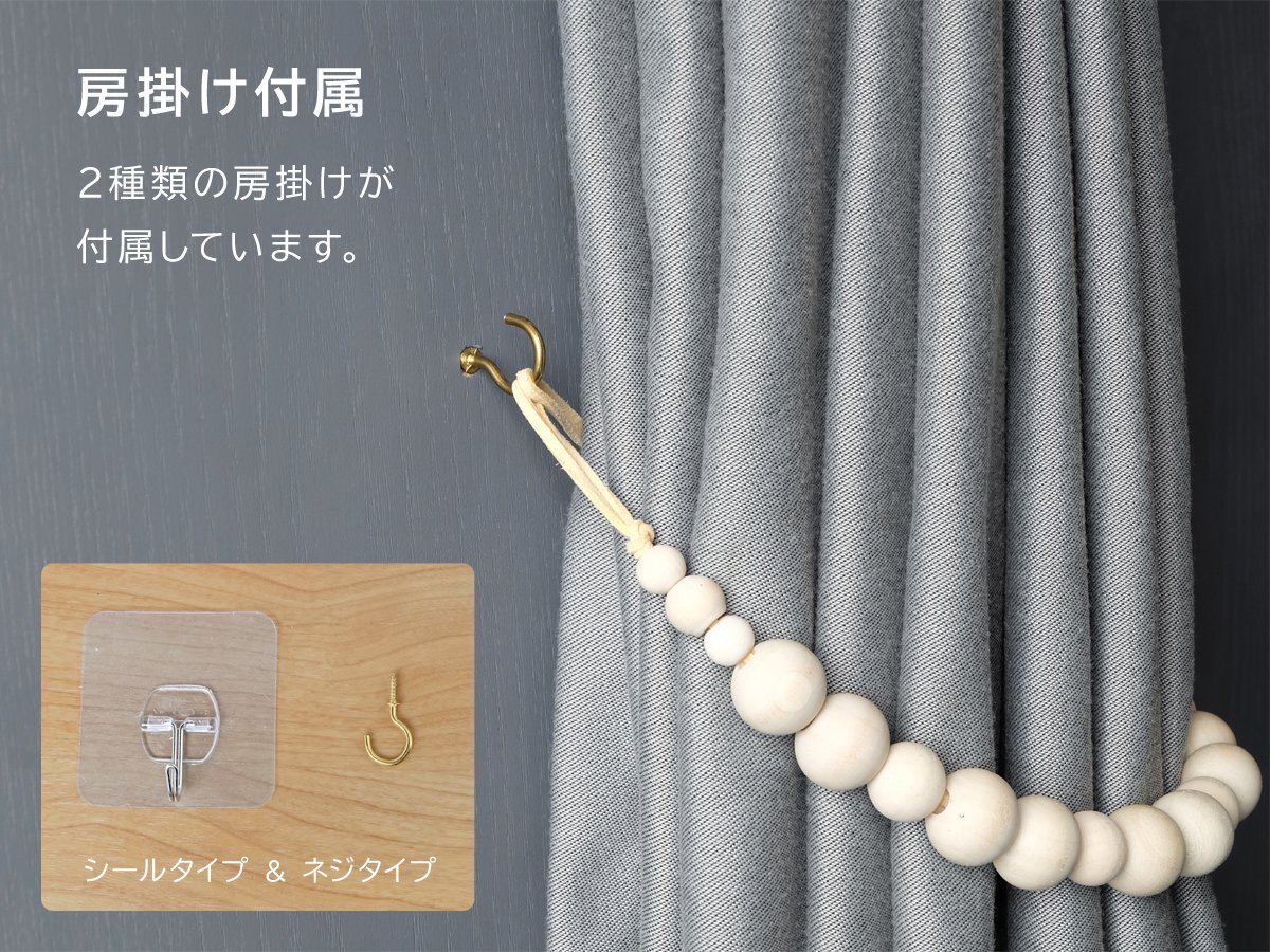 【お得な2個セット】ウッドビーズ カーテンタッセル ナチュラル 留め具 木製 窓掛け 収納 雑貨 家具 小物 リビング 寝室 インテリア