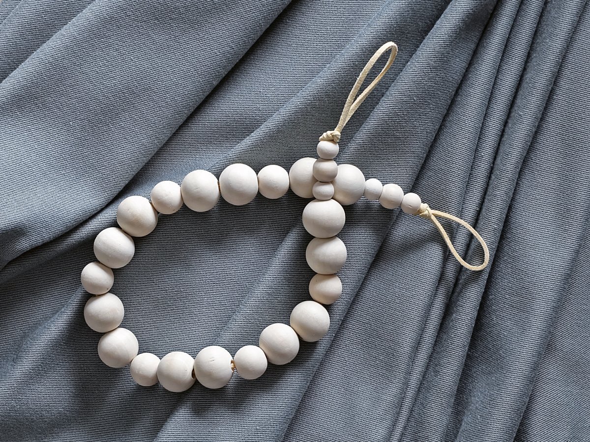 まばらな大きさの球型の木製ビーズが並んだデザインとなっており、まるでアクセサリーのよう。