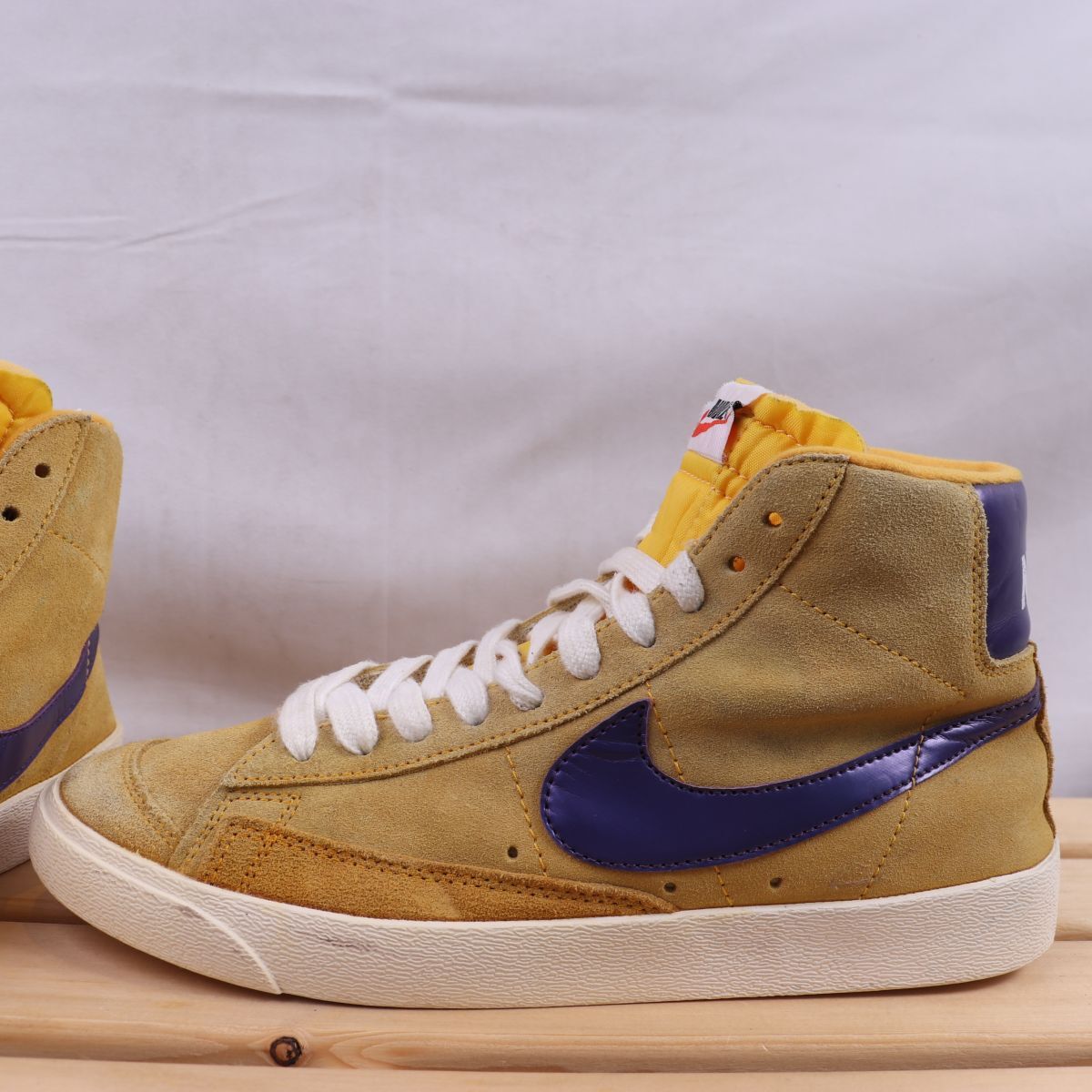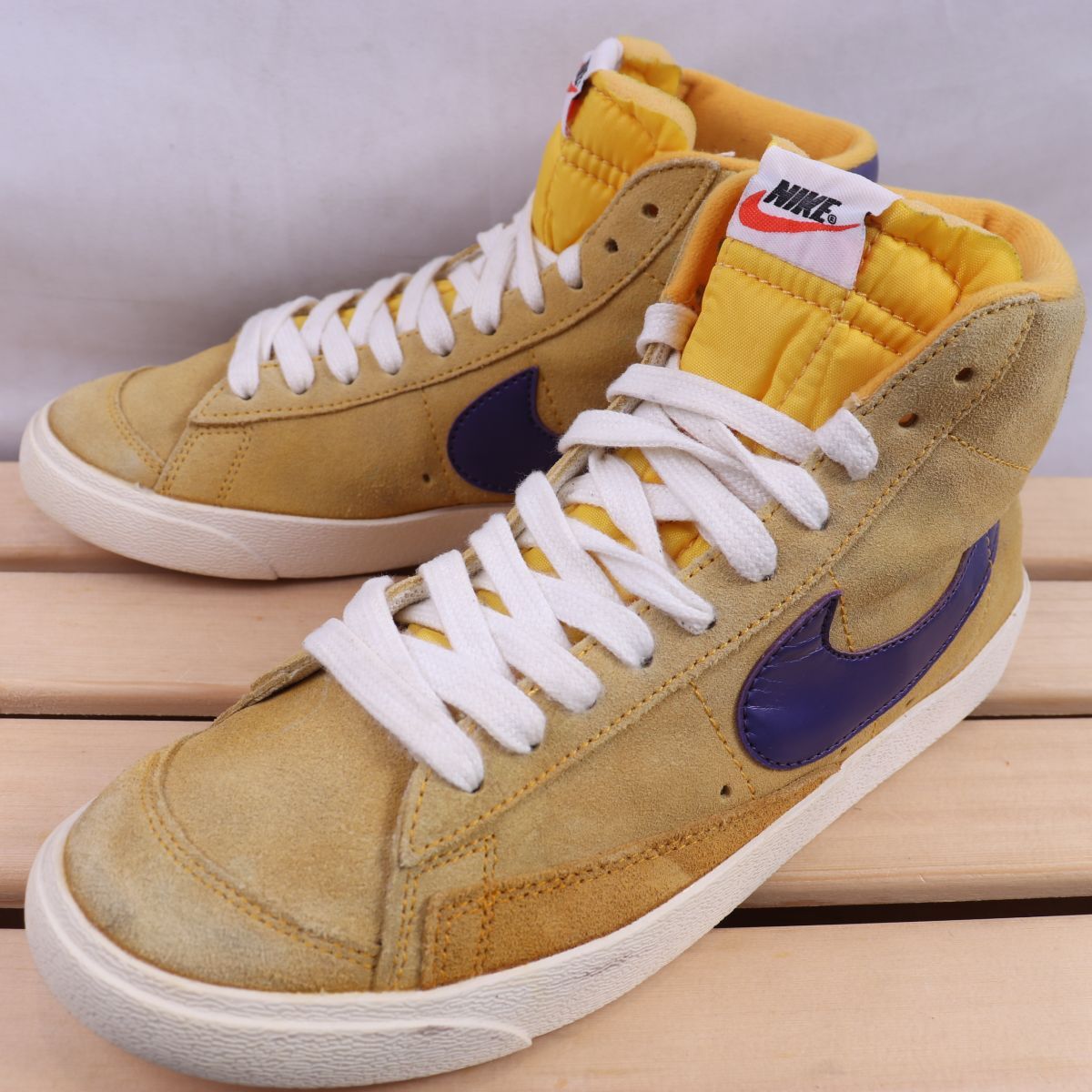 z1977 ナイキ SB ブレーザー ミッド US7 25.0cm/黄色系 メタリックパープル NIKE SB Blazer ブレザー メンズ ユニセックス スニーカー 中古