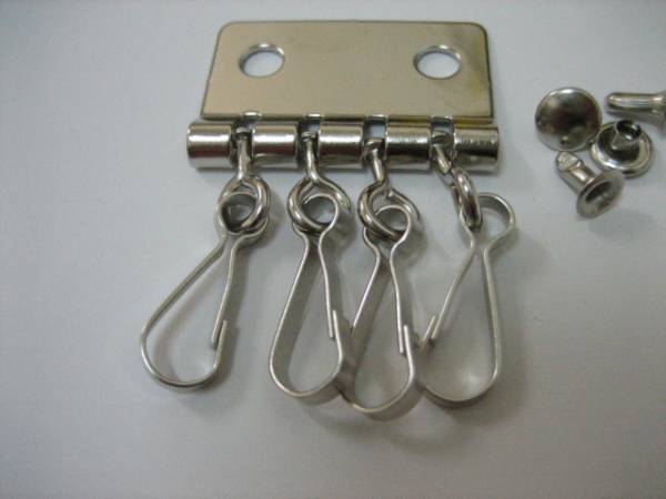 ② 4連 キー金具 キーケース金具 カシメ付 ニッケル 10個