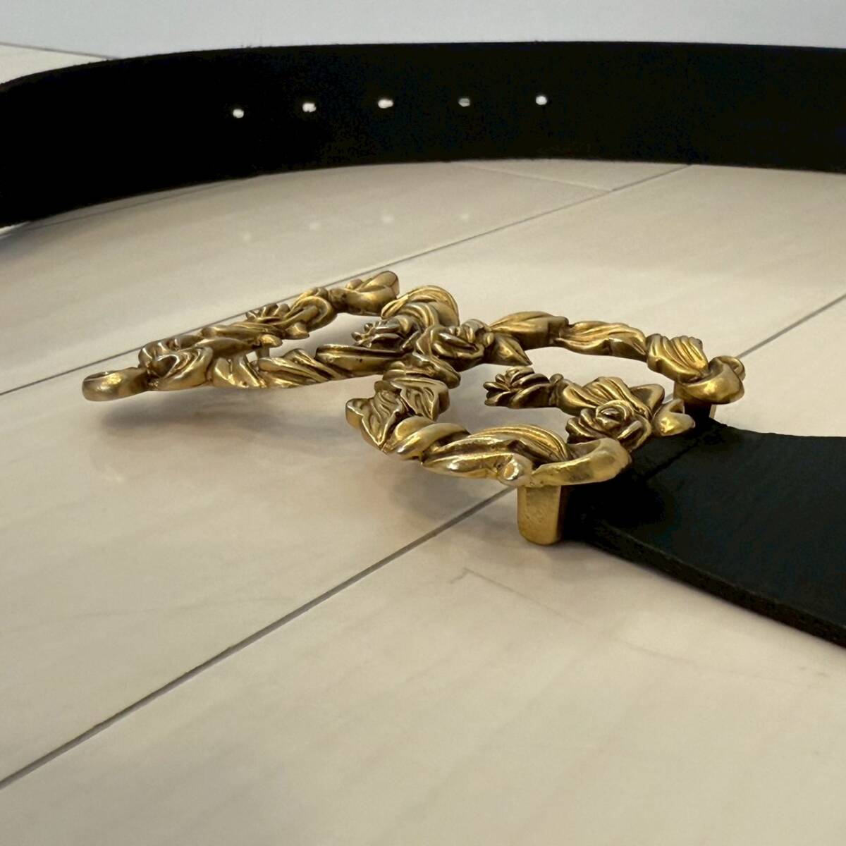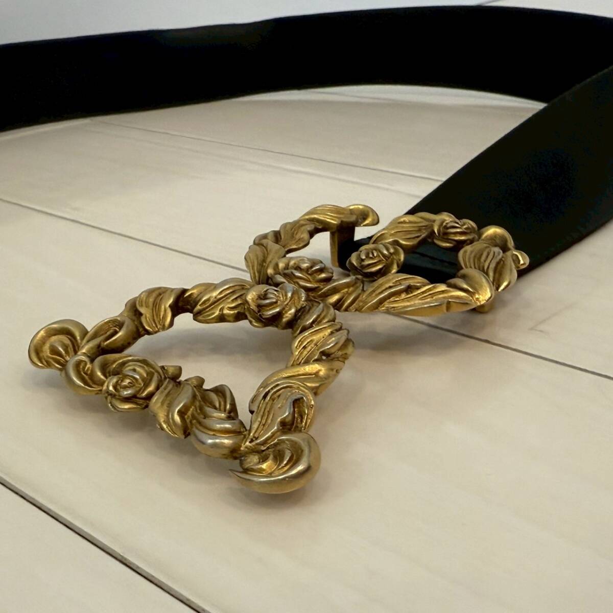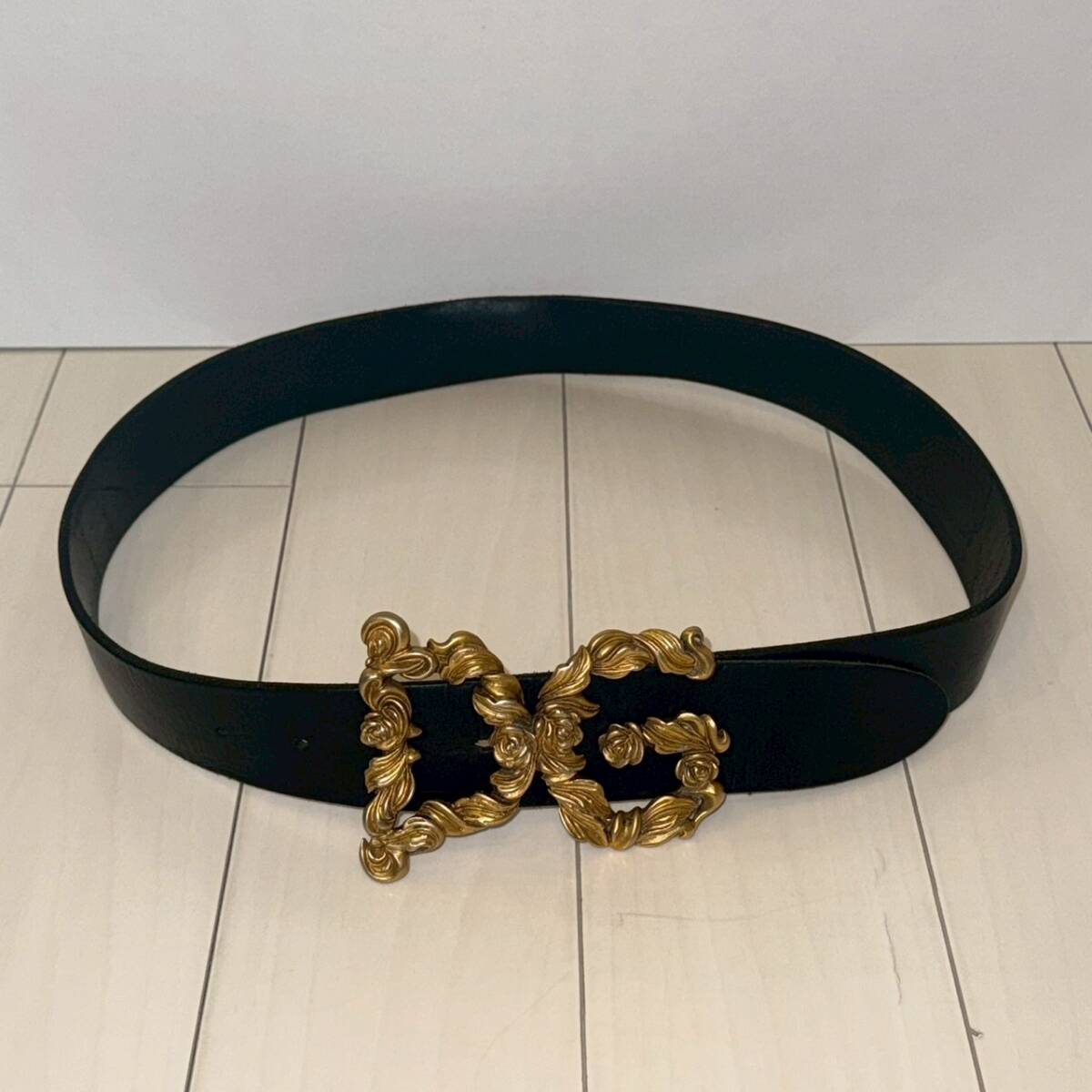 ♪薔薇♪ローズ♪バックル◆DGロゴ◆D&G◆ドルガバ◆革ベルト◆全長106㎝/幅3.8㎝◆検索)強烈インパクト!/印象ばっちり!/黒/ブラック/