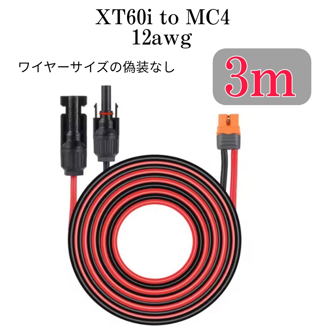 XT60i(XT60i-F)(XT60もOK) to MC4 3m 変換延長ケーブル12AWG  XT60/XT60iどちらにも使えます 太陽光発電 太陽光パネル EcoFlow等