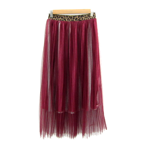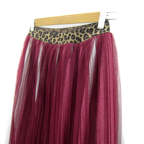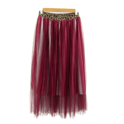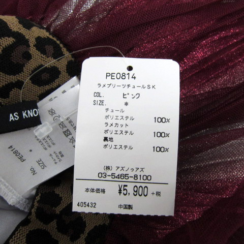 未使用品 アズノウアズ ピンキー チュールスカート プリーツスカート ロング丈 マキシ丈 ラメ レオパード柄 ピンク /SY16 レディース