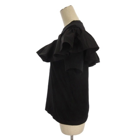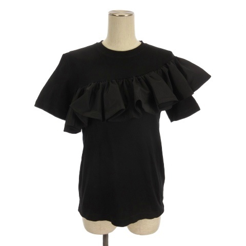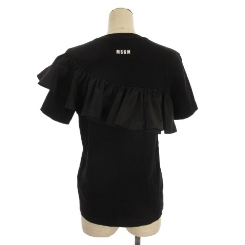 エムエスジーエム MSGM Tシャツ カットソー 半袖 クルーネック フリル イタリア製 コットン ブラック XS レディース