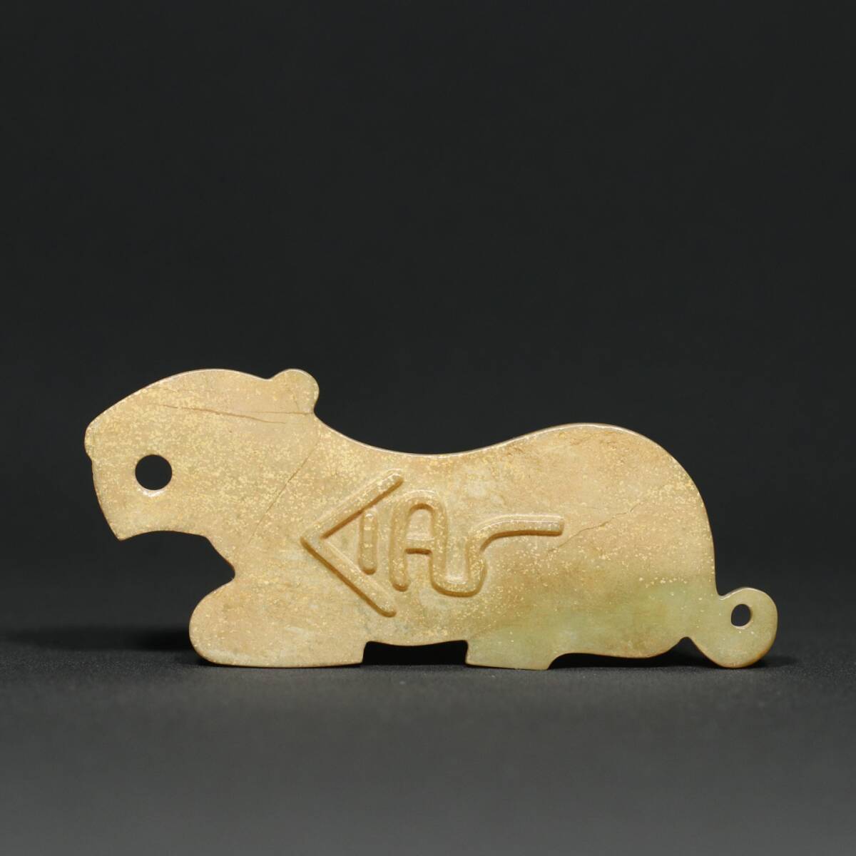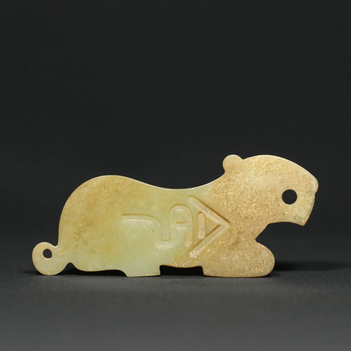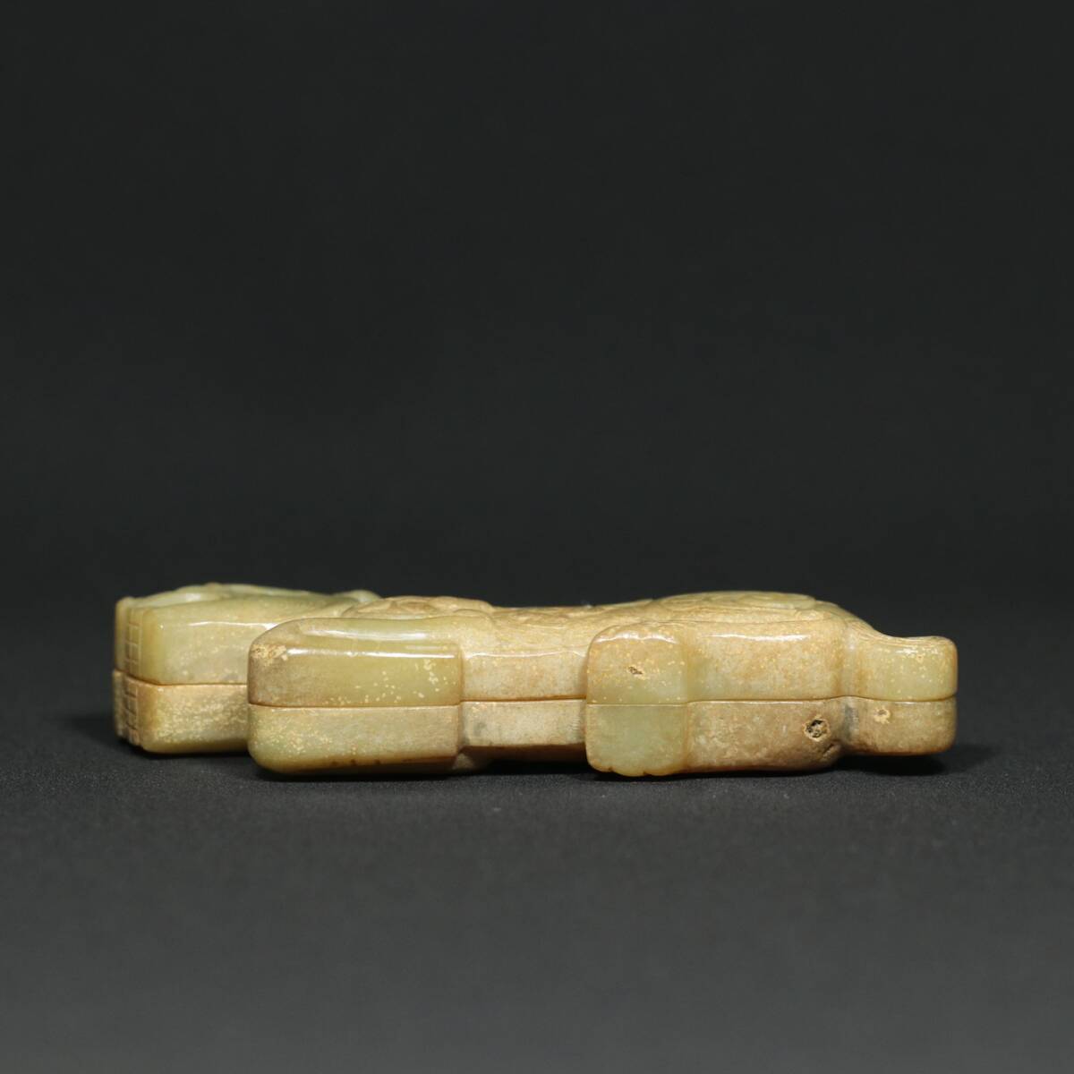 | 寸法:高さ約4.1cm、幅さ約9.5cm、重さ約114g 状態:目立った傷や汚れなし 【インボイス登録済】 商品紹介:玉質は温潤で、沁色は自然で、刀功は老道、彫刻は生き生きとして、線は滑らかで、品相図。 | ||