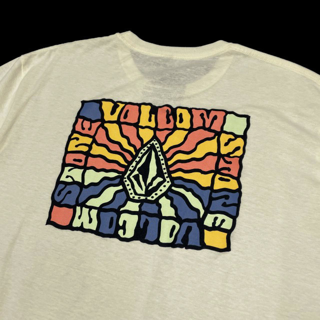売切り【正規新品】VOLCOM ボルコム◆半袖 Tシャツ スケート サーフ ストーンロゴ バックプリント 男女兼用(XL)クリーム色 250617-B