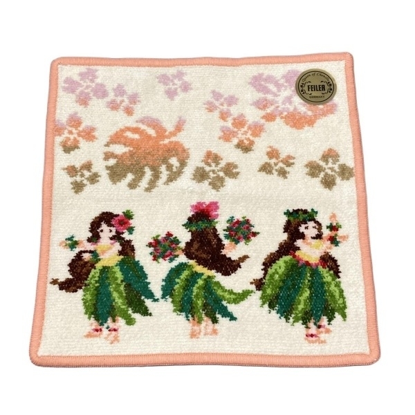 フェイラー FEILER - コットン アイボリー×ライトピンク×マルチ ハンドタオル/マナマナ/ハッピーフラガール/タオルハンカチ 新品同様