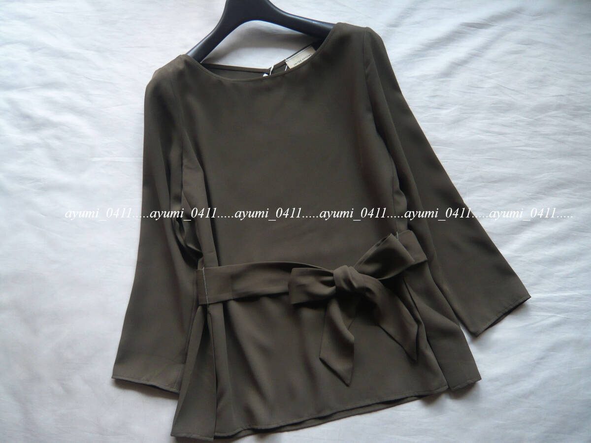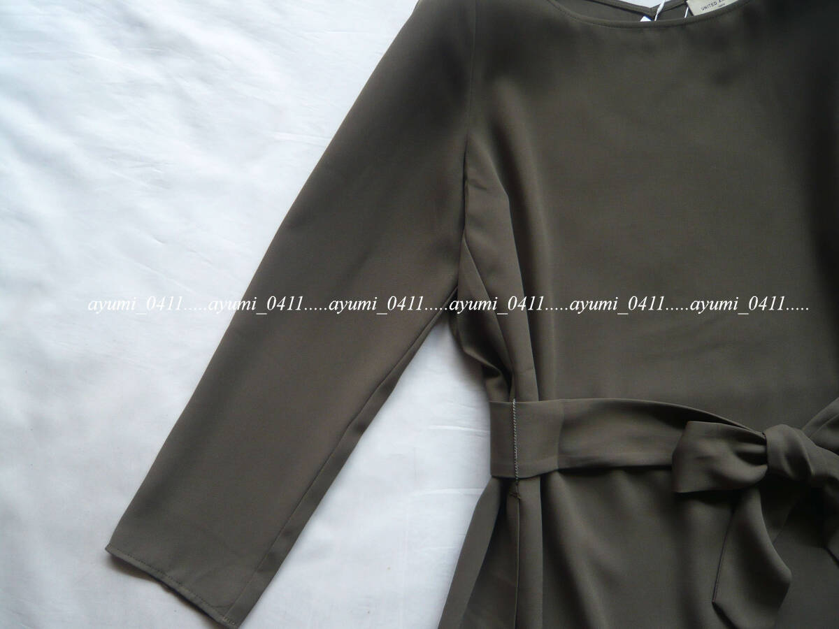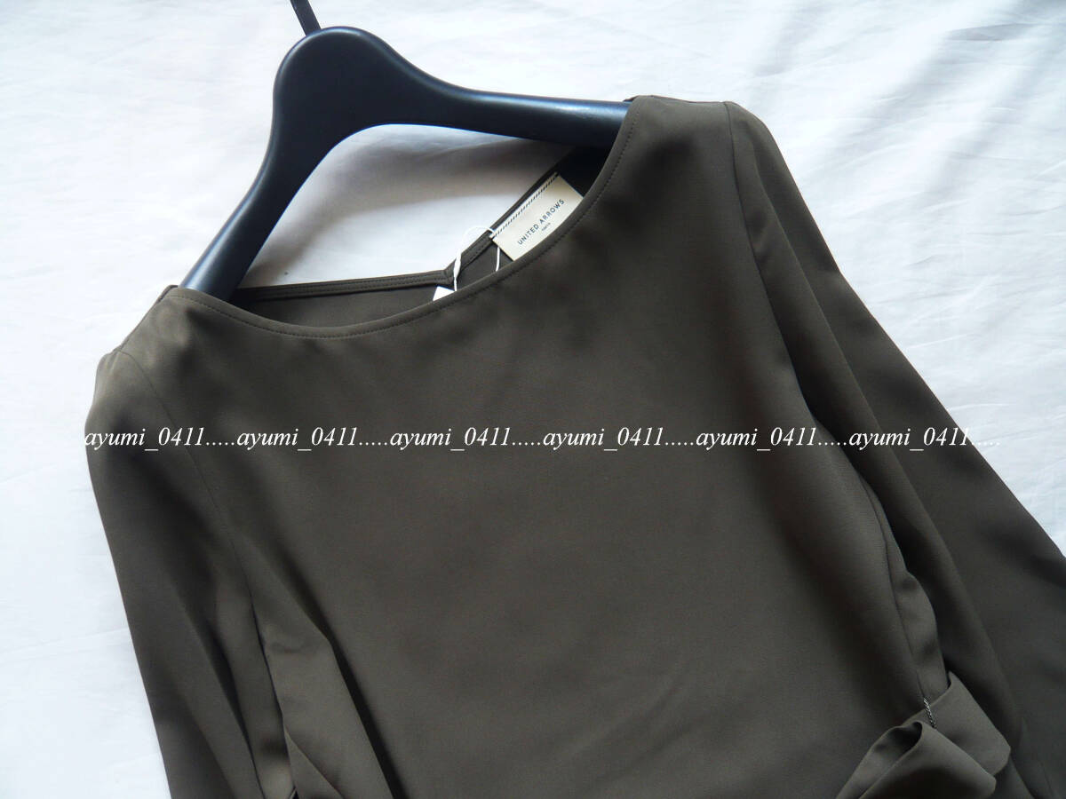 ★未使用★UNITED ARROWS ユナイテッドアローズ/オリーブ・ウエストリボン付き キレイめ プルオーバーブラウス/定価1.5万円/手洗い◎