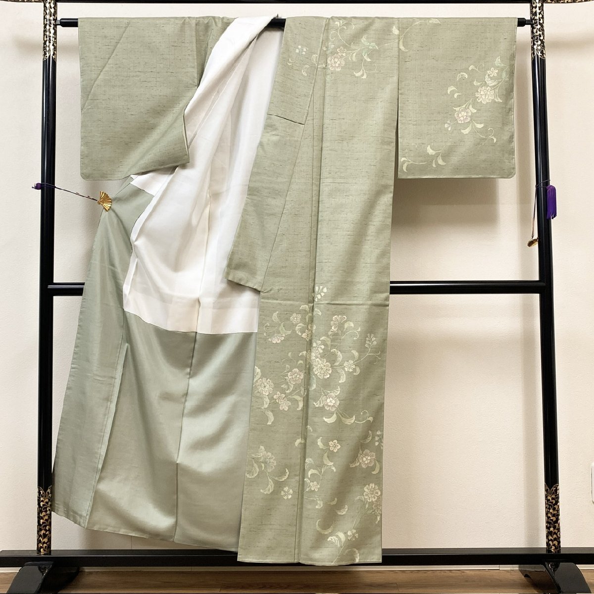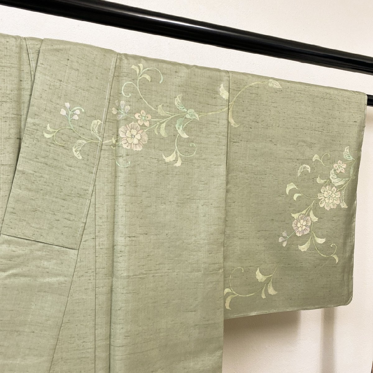 加藤改石さんの本場牛首紬に品のある花が描かれた訪問着でございます。