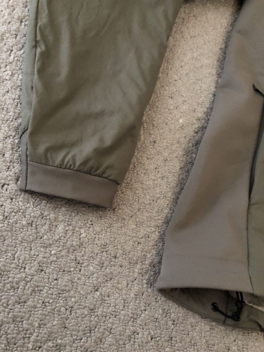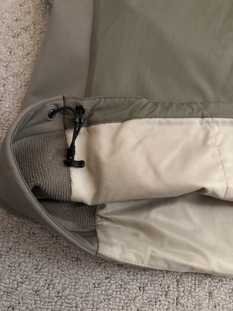 フード部分と後面裾幅部分が調節アジャスターコードがあります