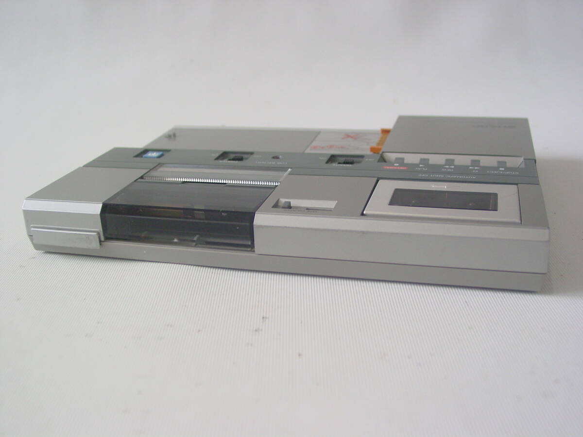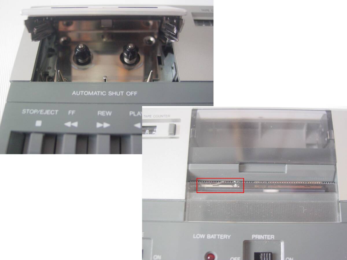 動作は、テープの再生、早送り、巻き戻しボタンでモーターは動いているようですが、テープは回りませんでした。