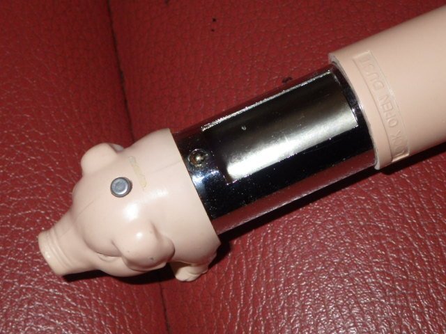 ブタの頭にあるボタンを押せば鼻からライトが光る仕様になります♪