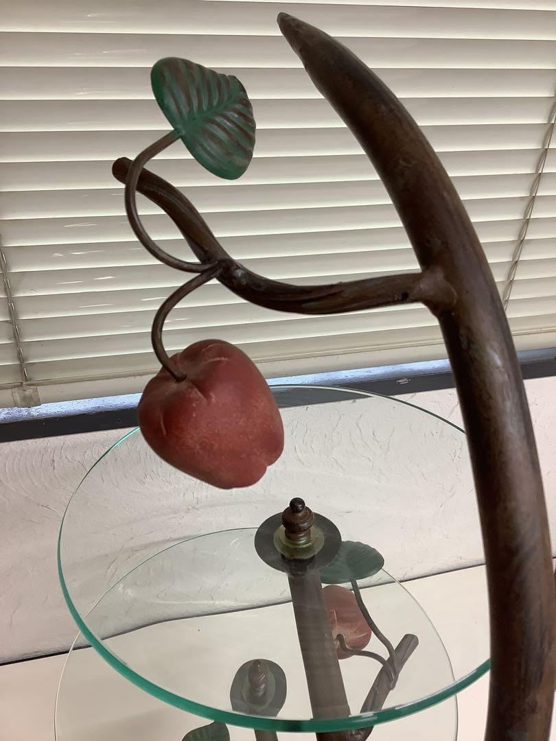 リンゴや枝は鉄製、二つの器はガラス製です。