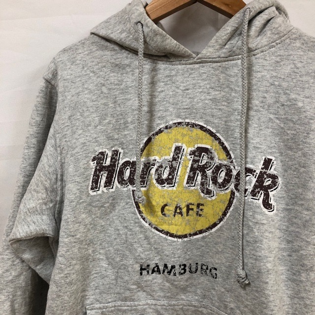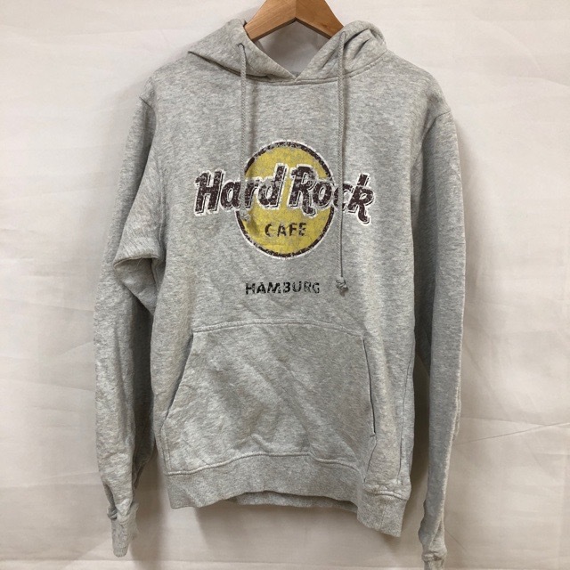 A855 ハードロックカフェ S アメリカ古着 長袖 プリント パーカー グレー Hard Rock Cafe メンズ