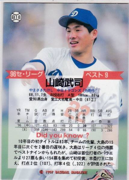 ●1997BBM 【山崎 武司】 96ベストナイン No.B-18:中日
