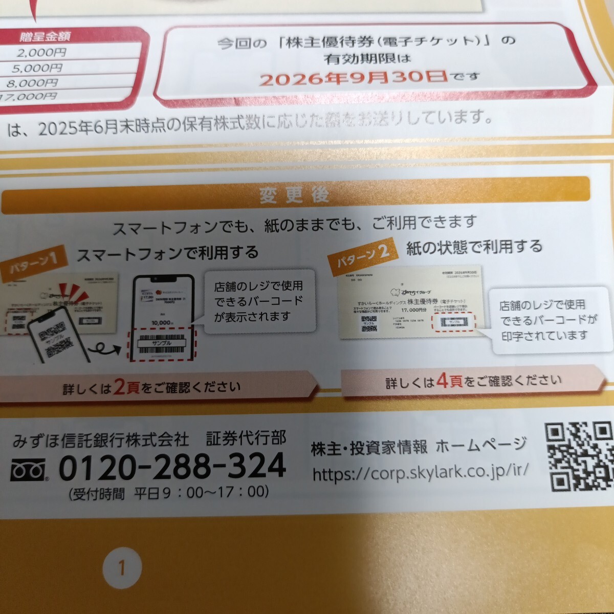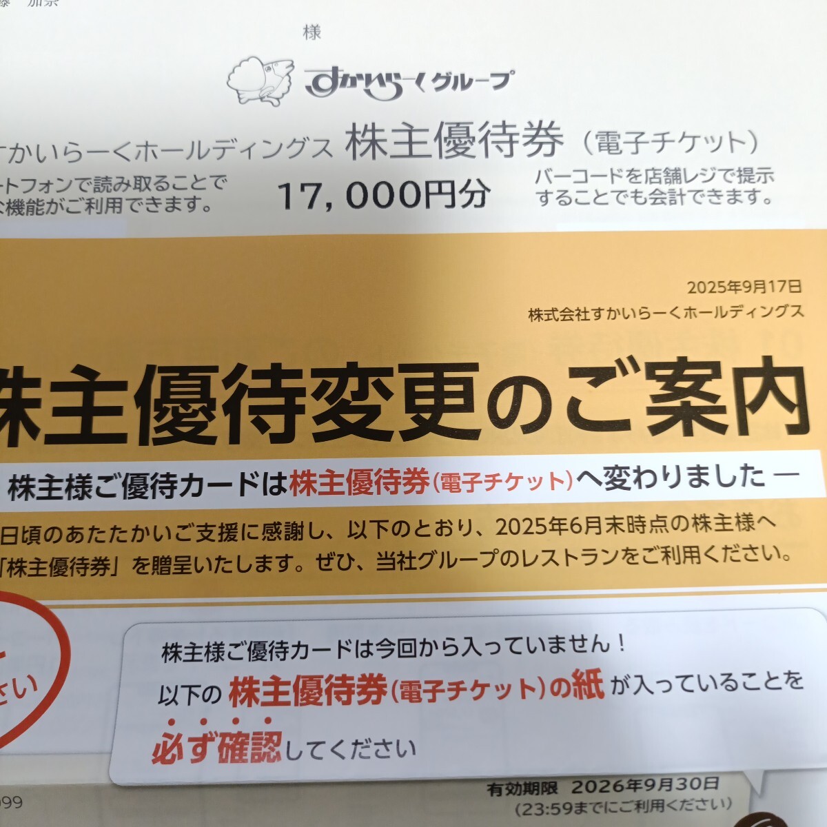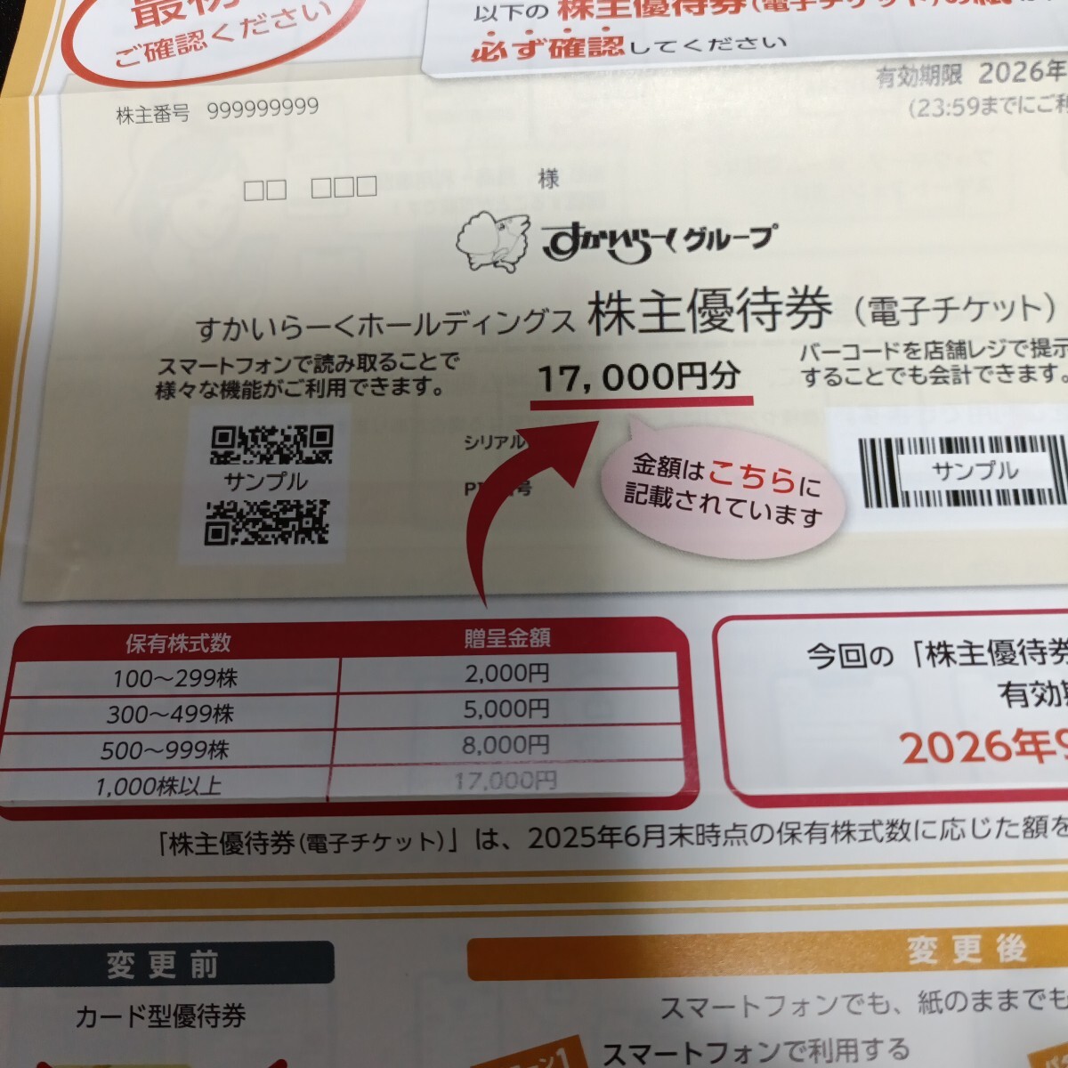 すかいらーくグループ 株主優待券(電子チケット)17000円 有効期限:2026年9月30日まで すかいらーく 株主優待