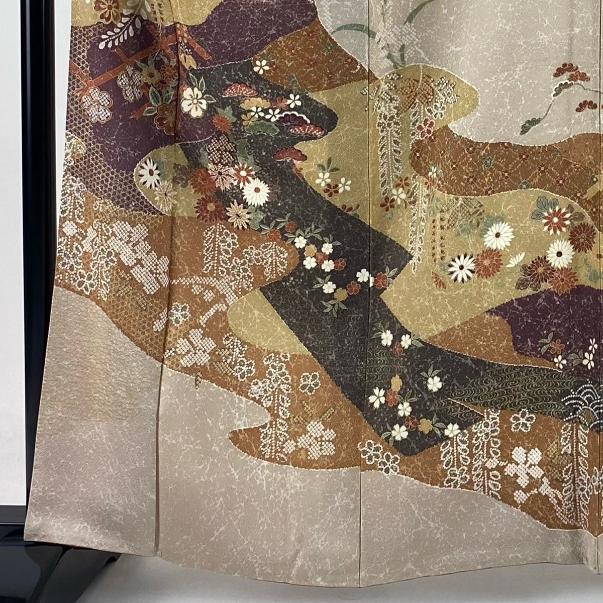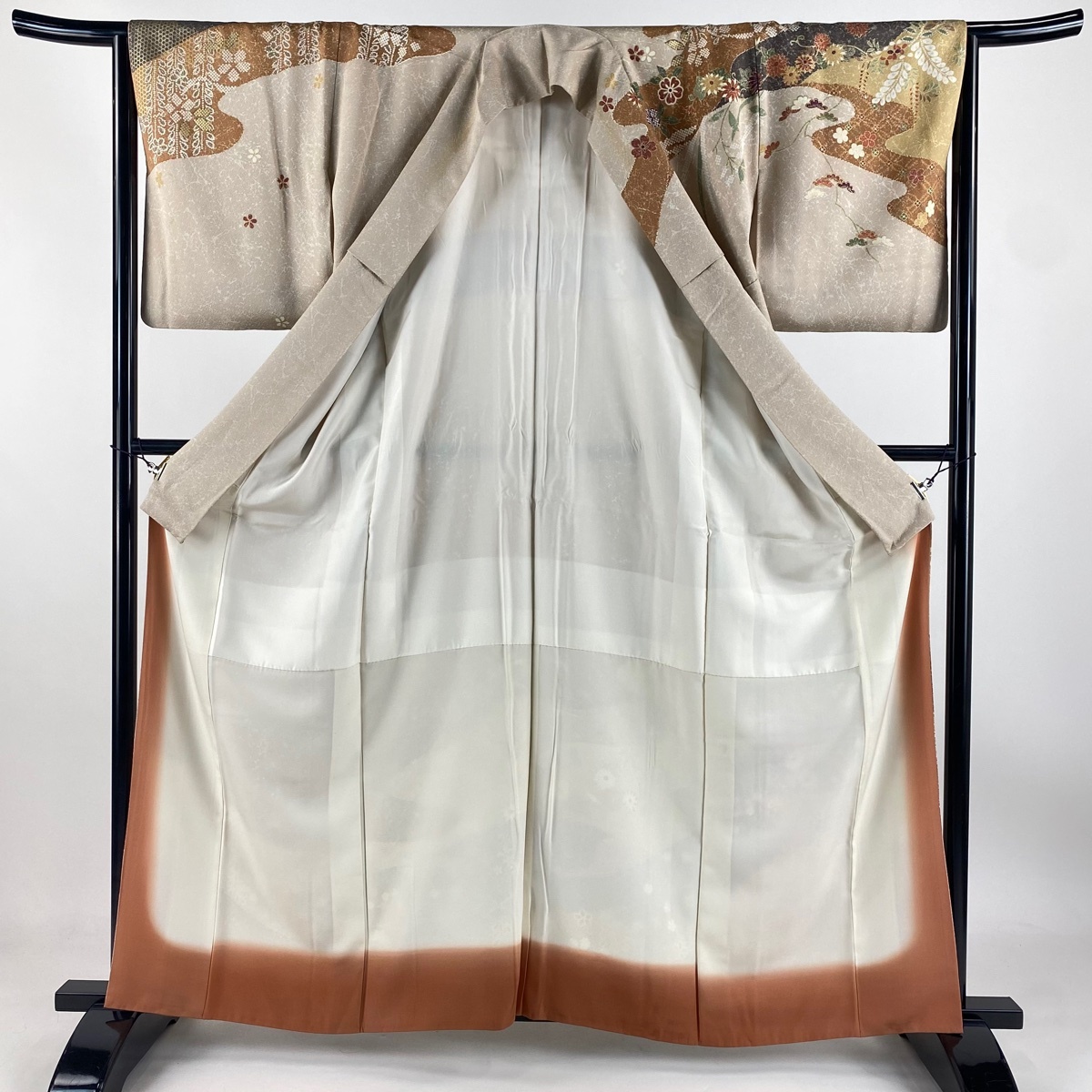 | 訪問着 秀品 桜 松 金彩 ベージュ 袷 身丈161 裄丈64.5 M 正絹 【中古】 |