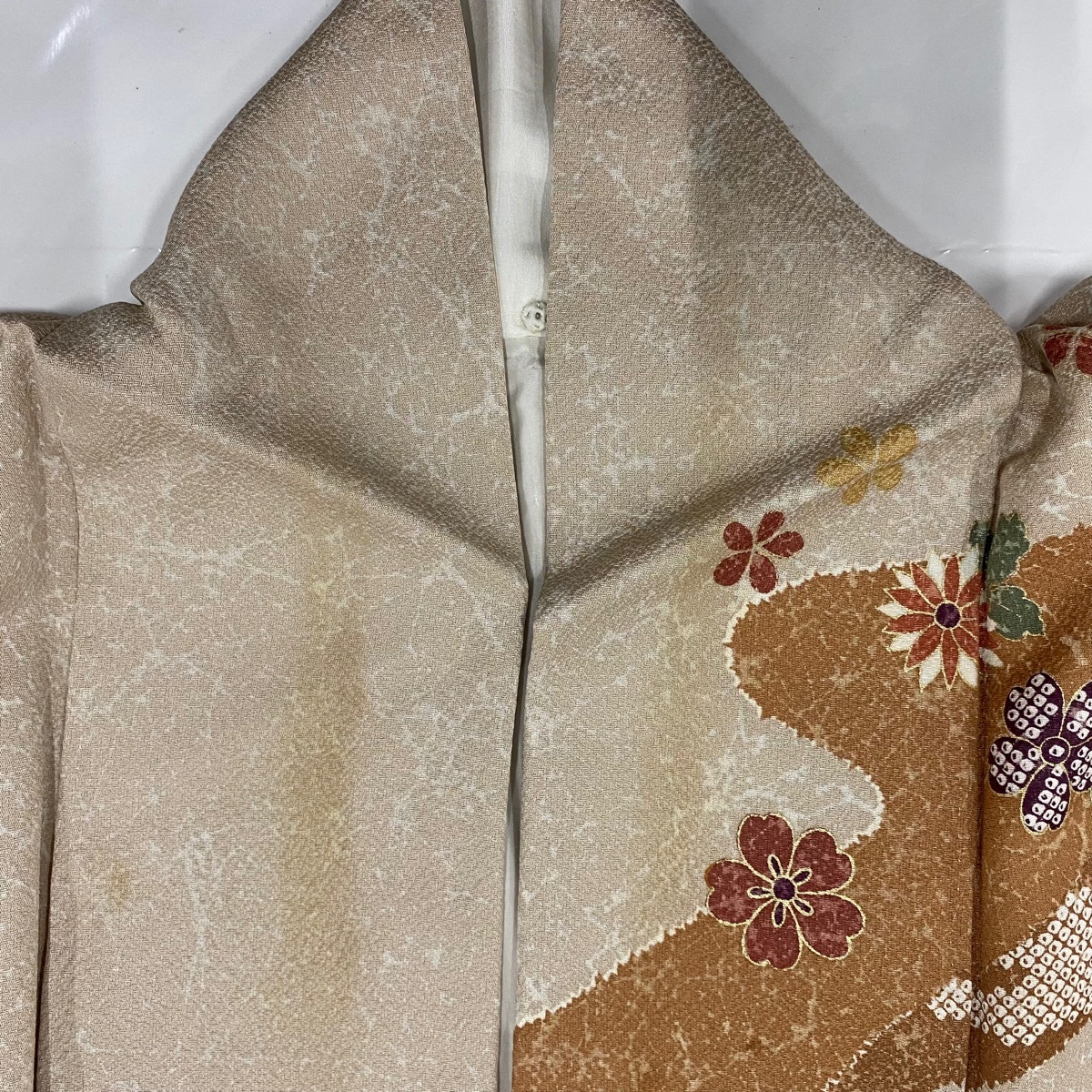 | 帯次第で幅広くお使いいただける素敵な訪問着です。 帯により格式を変える事の出来る印象のお着物は、様々に場面で活躍してくれることでしょう。 右前袖と右衿にシミ、衿周りや両袖口中と後身頃の裾付近に汚れがございます。 また、上前から後身頃にかけて柄のズレがございます。 ご購入の際はその点ご留意ください。 ※なお、厳しく商品の状態確認を行っておりますが、記載の汚れ以外にも見落とし箇所がある可能性がある旨ご了承いただけますと幸いです。 沢山の商品の中からご覧いただき誠にありがとうございます。 【PR2】 |