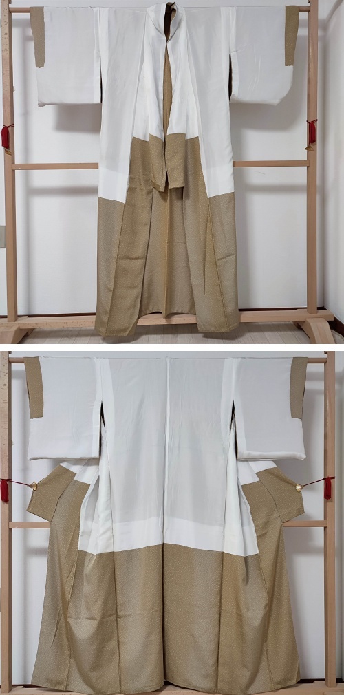 梱包方法 | 三つ折にした着物をさらに半分にして簡易包装にて発送いたします。タトウ紙などは有りません。 シワなどつきますのでご理解下さい。 |