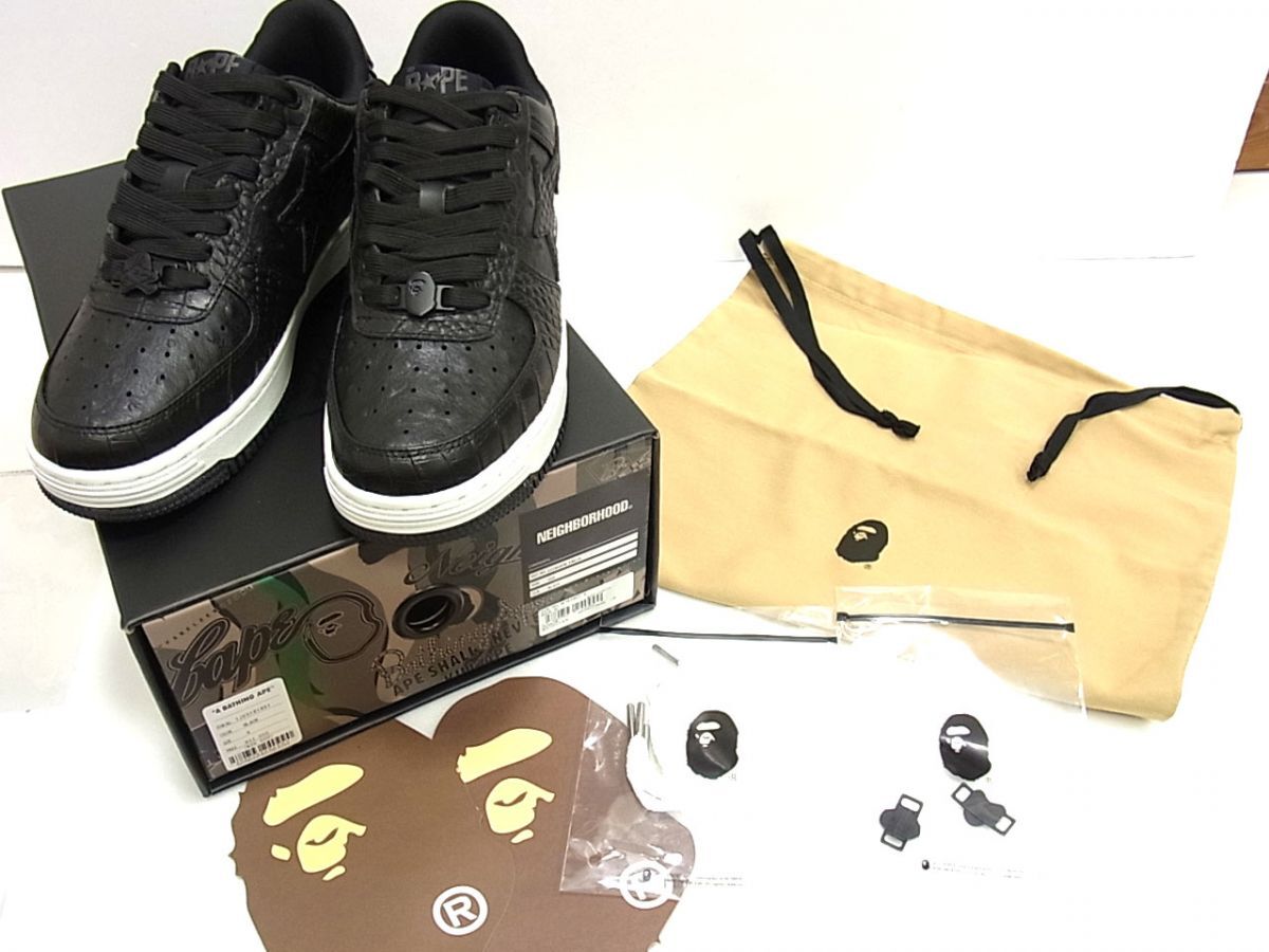 未使用品☆A BATHING APE×NEIGHBORHOOD BAPE STA スニーカー 222NOAPN-FW01S 箱・替え紐付 シューズ ローカット 靴