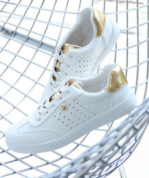 「MICHAEL KORS」 ローカットスニーカー 23.0cm ホワイト×ゴールド レディース