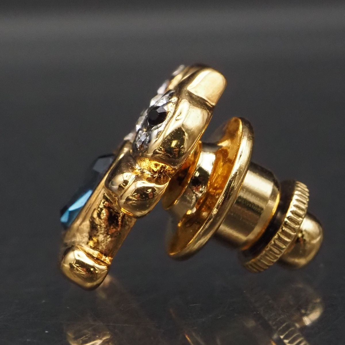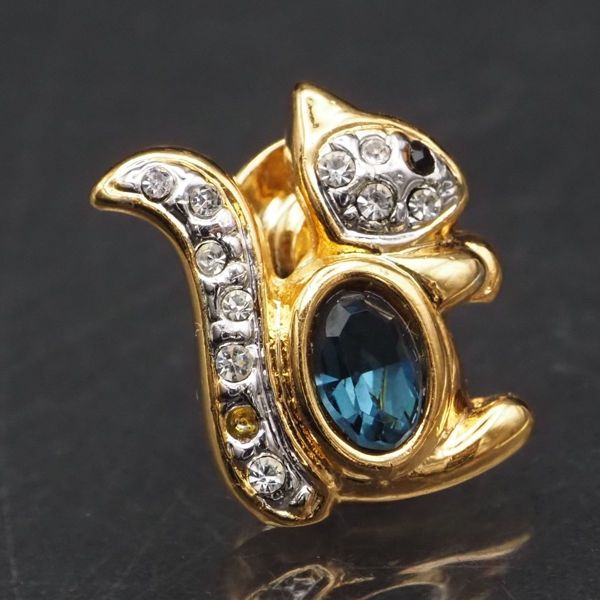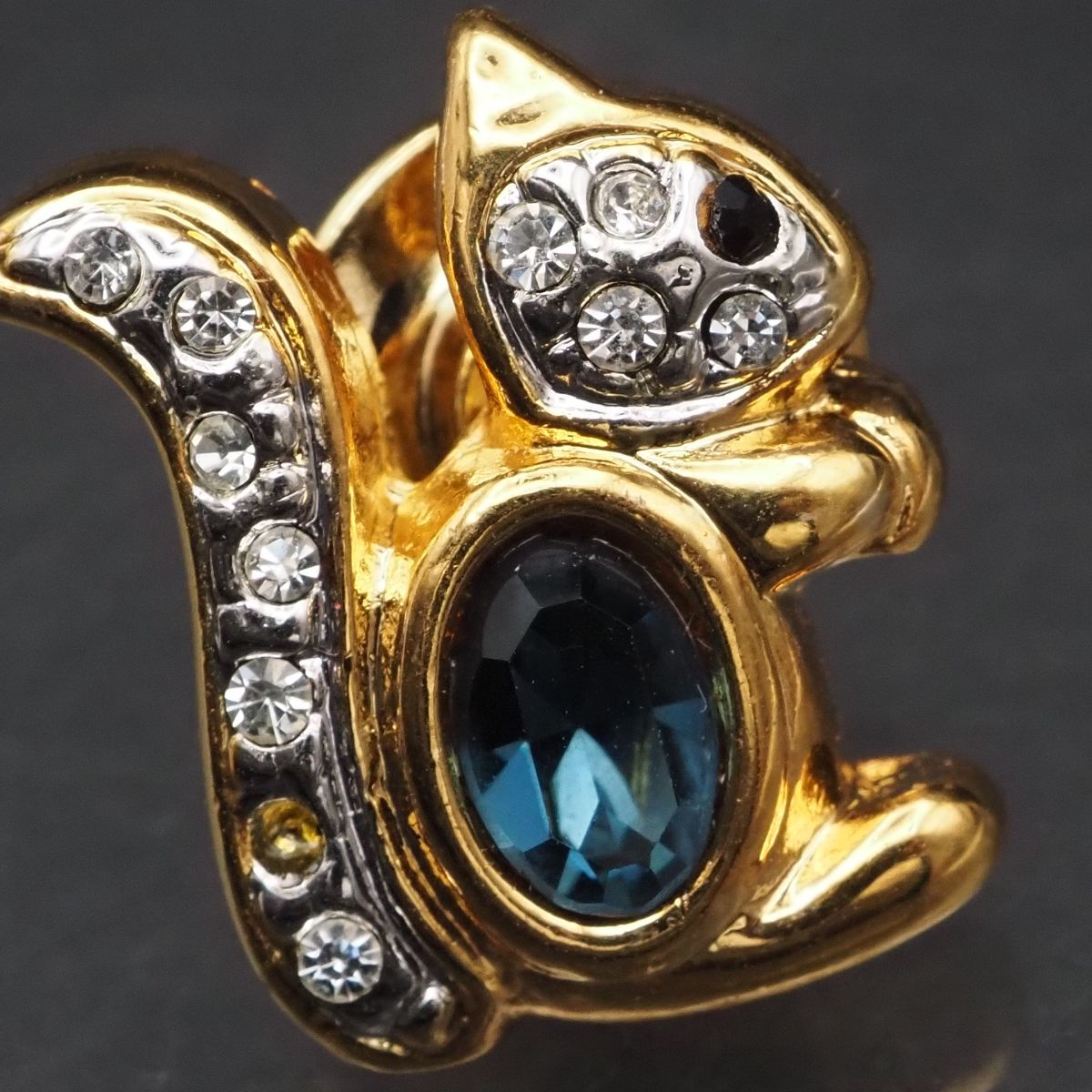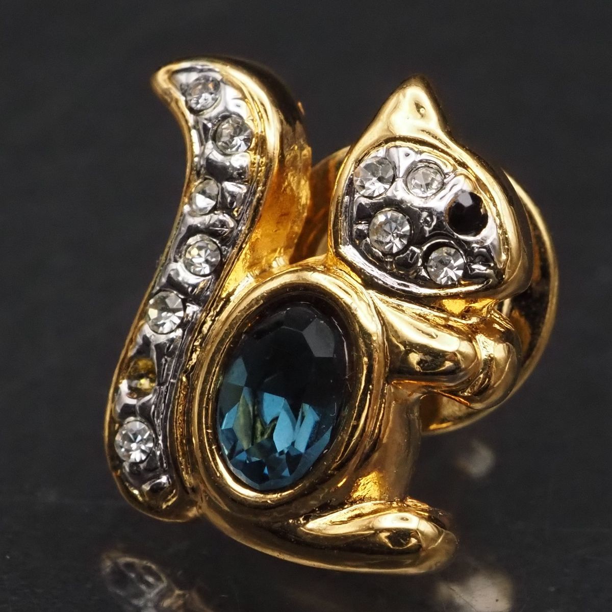 F313 ピンブローチ リス サファイア風 ラインストーン ゴールド デザイン ラペルピン コスチュームジュエリー