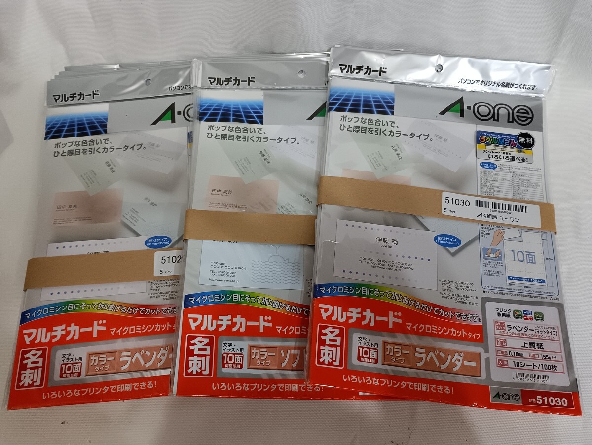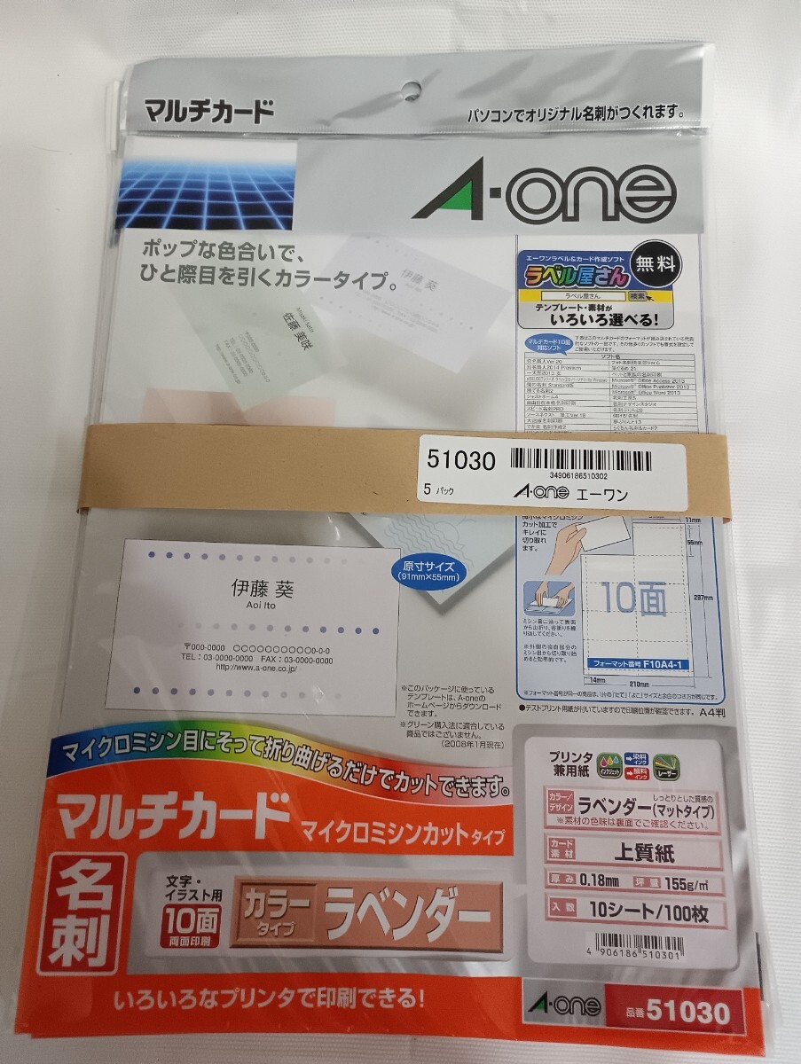 | ★ 未使用 エーワン マルチカード 名刺 10シート×15枚(1500枚) 51029 51030 ソフトブルー ラベンダー | |