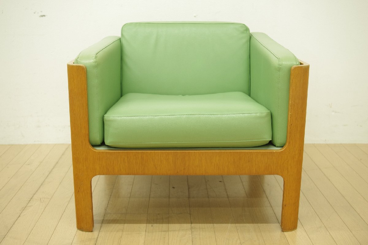 | 【商品紹介】 天童より 1人掛けソファのご紹介です。 剣持勇デザインのHacoシリーズは、1961年、国立京都国際会館のロビー用にデザインされました。 身体になじむソフトなクッションを一体形成のウッドフレームで包み込んだ個性的なデザインが特徴です。 ※合皮仕様となります。 詳細は、商品ホームページにてご参照ください。 是非、この機会にご検討ください。 【コンディション】 中古・使用品です。 ・フレームには擦れキズや打痕キズ、落としきれない汚れがございます。 ・座面の裏地に染みや小さな穴がございます。 ・アーム上部には日焼けによる色落ちが見られます。 ・突板剥がれがございます。 ・ウェービングテープには劣化があります。 使用感はございますが、まだまだご愛用いただける状態です。 ※清掃、撮影時に目立つ箇所を抜粋して写真掲載しておりますが、同等の傷などがあるものとご了承ください。尚、商品ページの追加写真にて状態をご確認の上、ご検討いただけますよう、お願いいたします。 この他にも商品を多数出品しておりますので、こちらから御覧下さい。 | ||