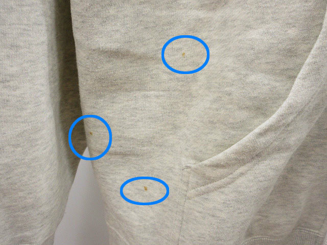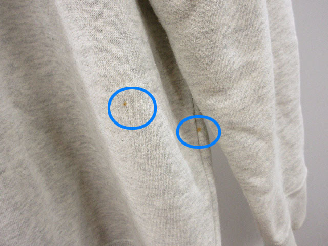 【状態】保管に伴い芳香剤のような香りがございます。首周り・袖口に汚れがあり、シミが点在しております。