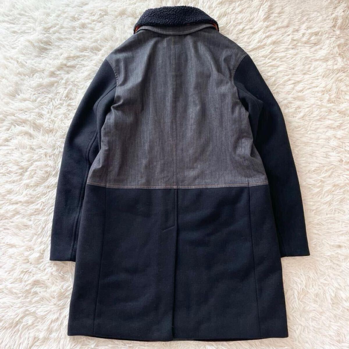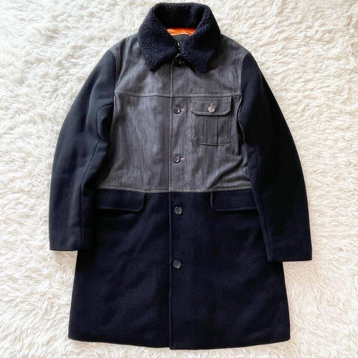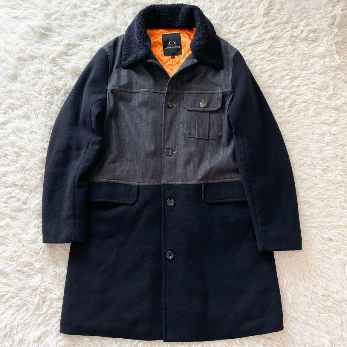 着脱可能なボア襟と、内側の光沢オレンジキルティングがスタイリッシュさと防寒性を両立します。