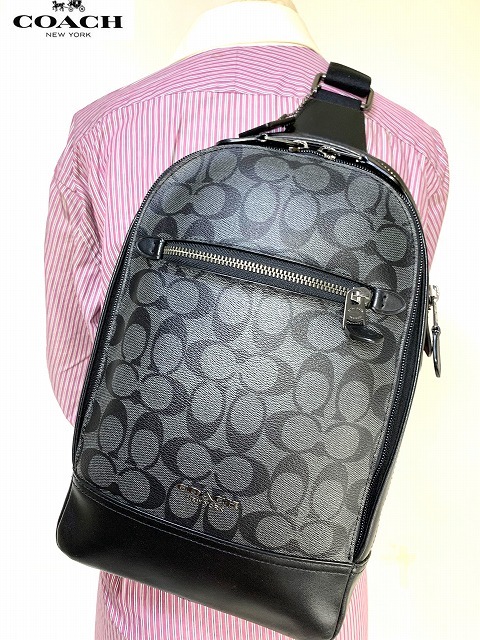 極美品★送料無料 コーチ メンズ COACH グラハム シグネチャー スリング パック ボディバッグ ショルダー