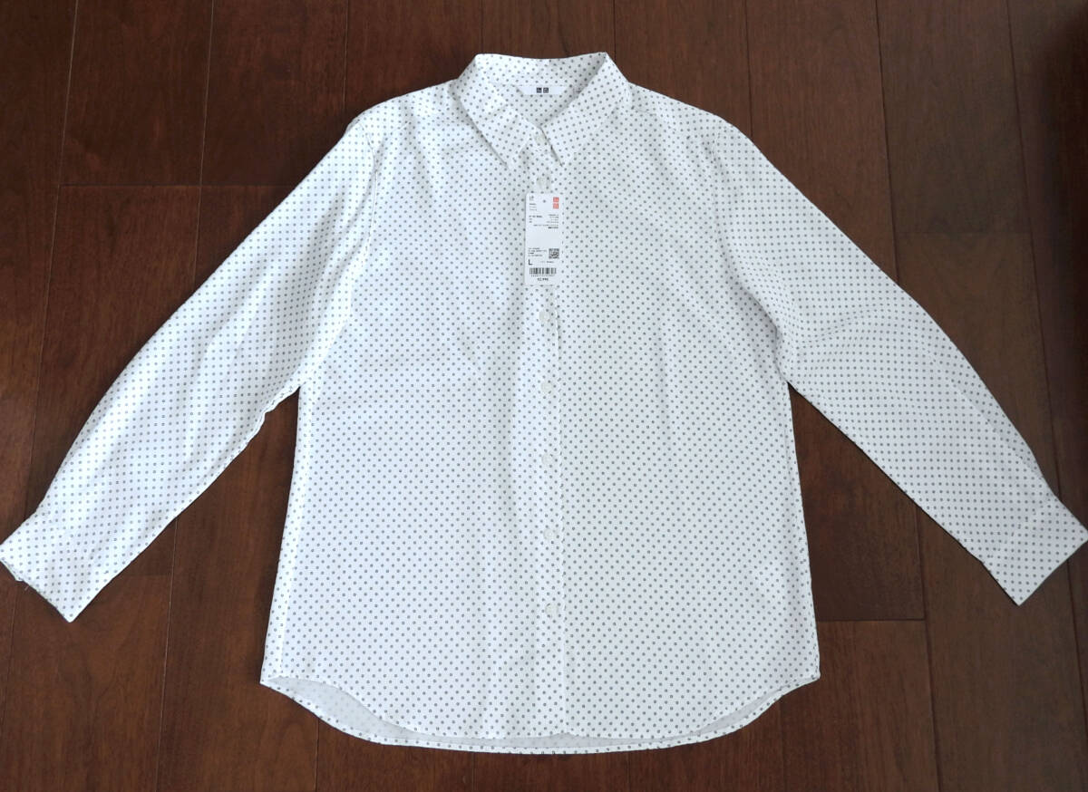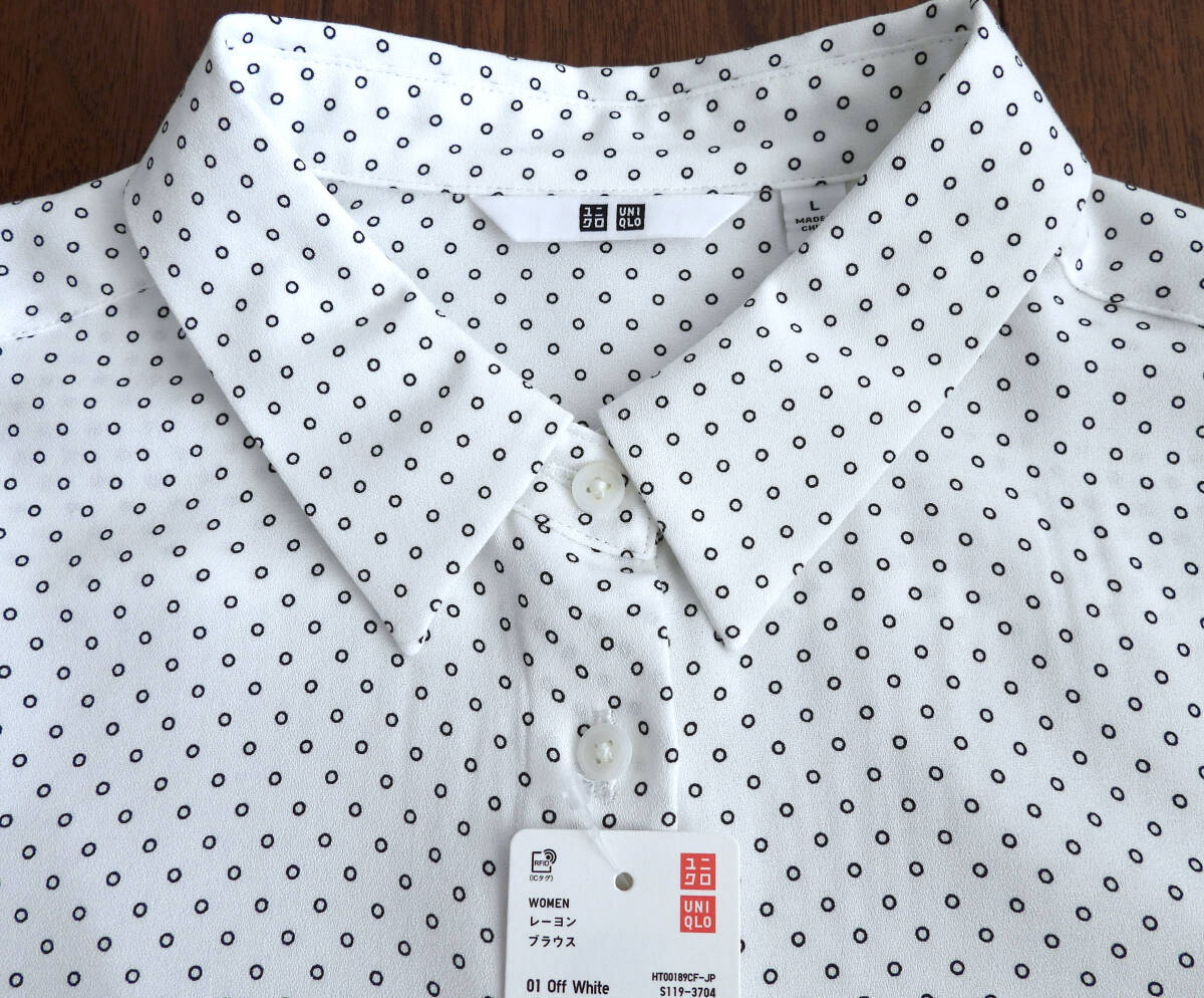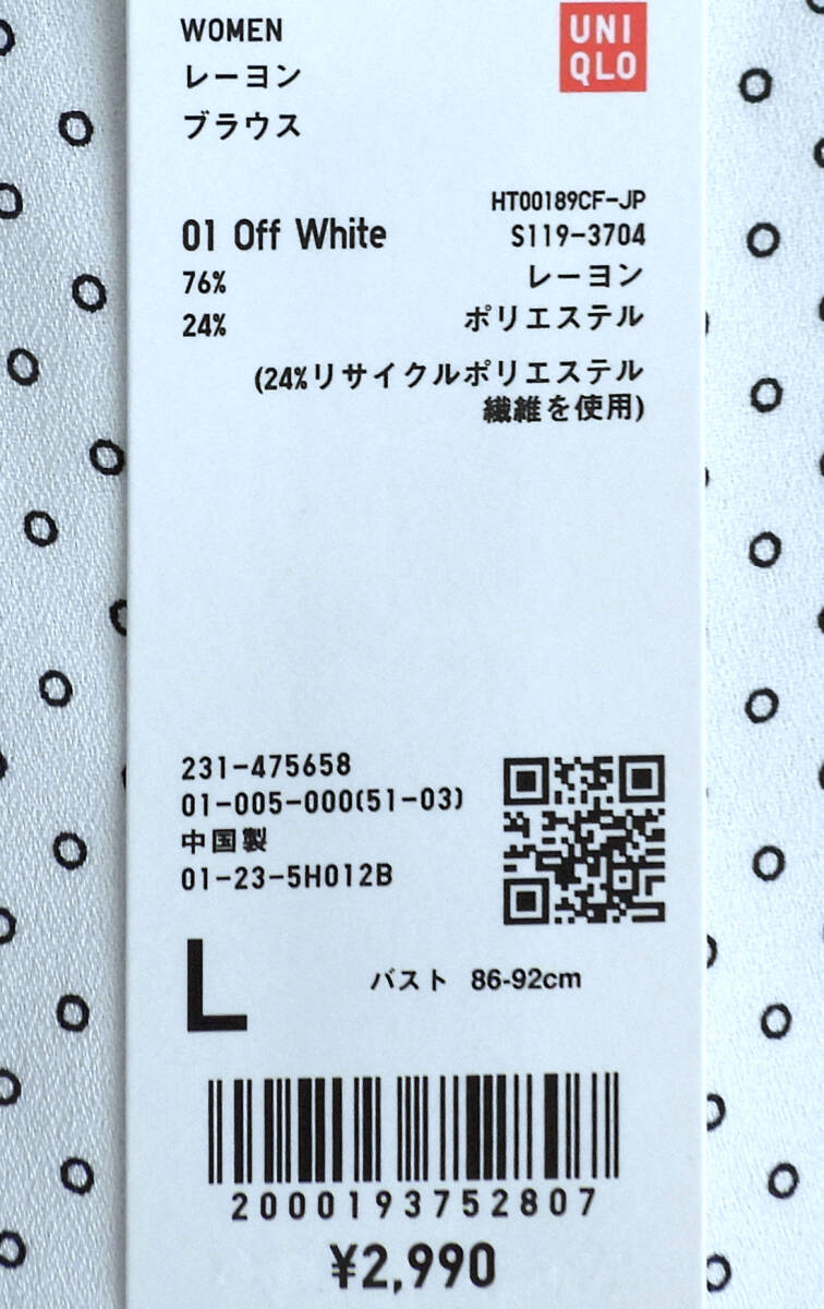 ユニクロ UNIQLO レーヨンブラウス ドット柄 長袖 Lサイズ WOMEN オフホワイト【新品未使用】