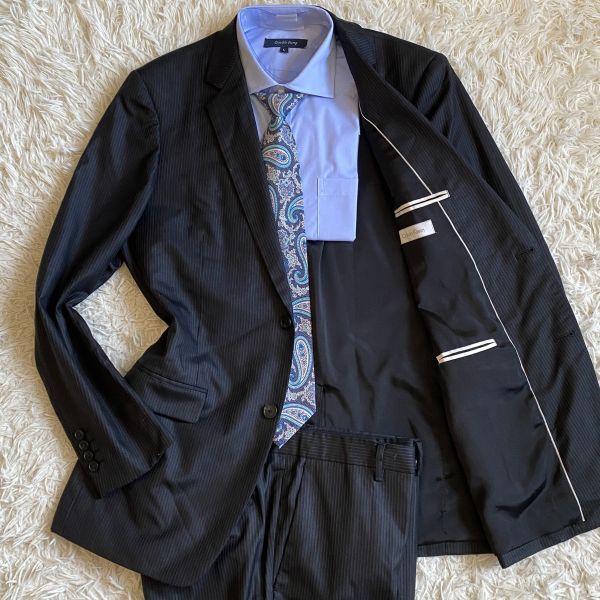 ☆大きいサイズ☆Calvin Klein☆秋冬 総裏 XL相当 黒 セットアップ メンズ スーツ カルバンクライン ブラック