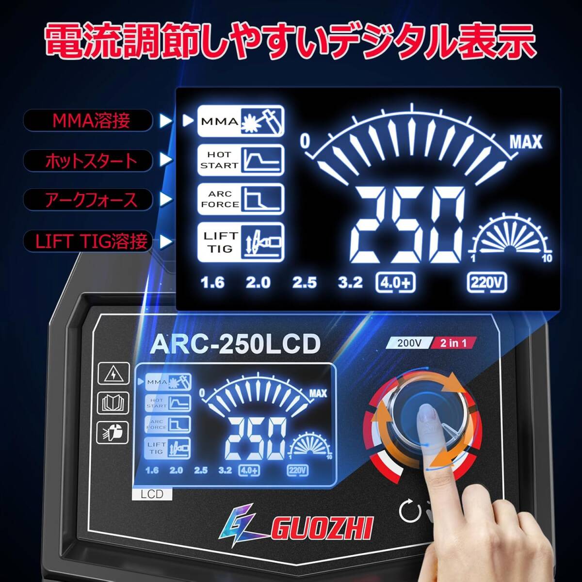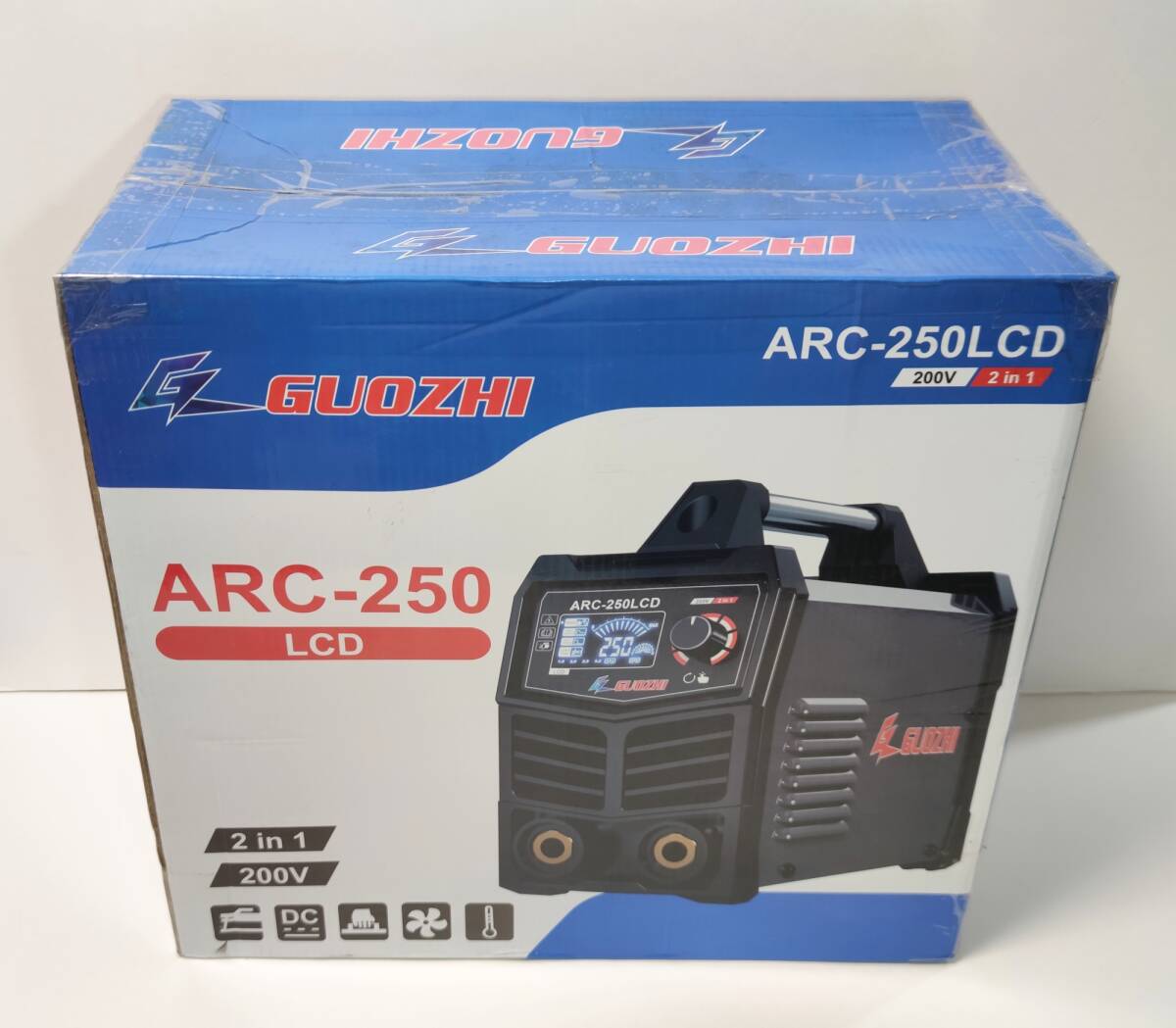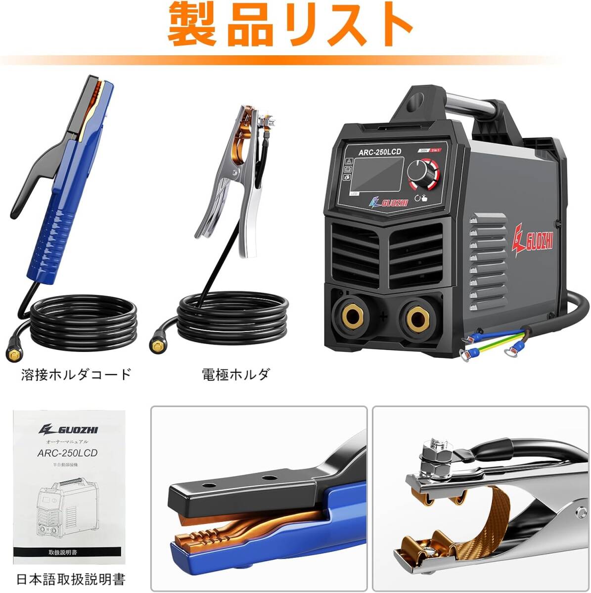 GZ GUOZHI 溶接機 200V 250A 被覆アーク溶接機 インバーター直流 ポータブル 電気 溶接機 定格使用率60% デジタル表示 小型 軽量 家庭用 出張工事 ARC-250LCD