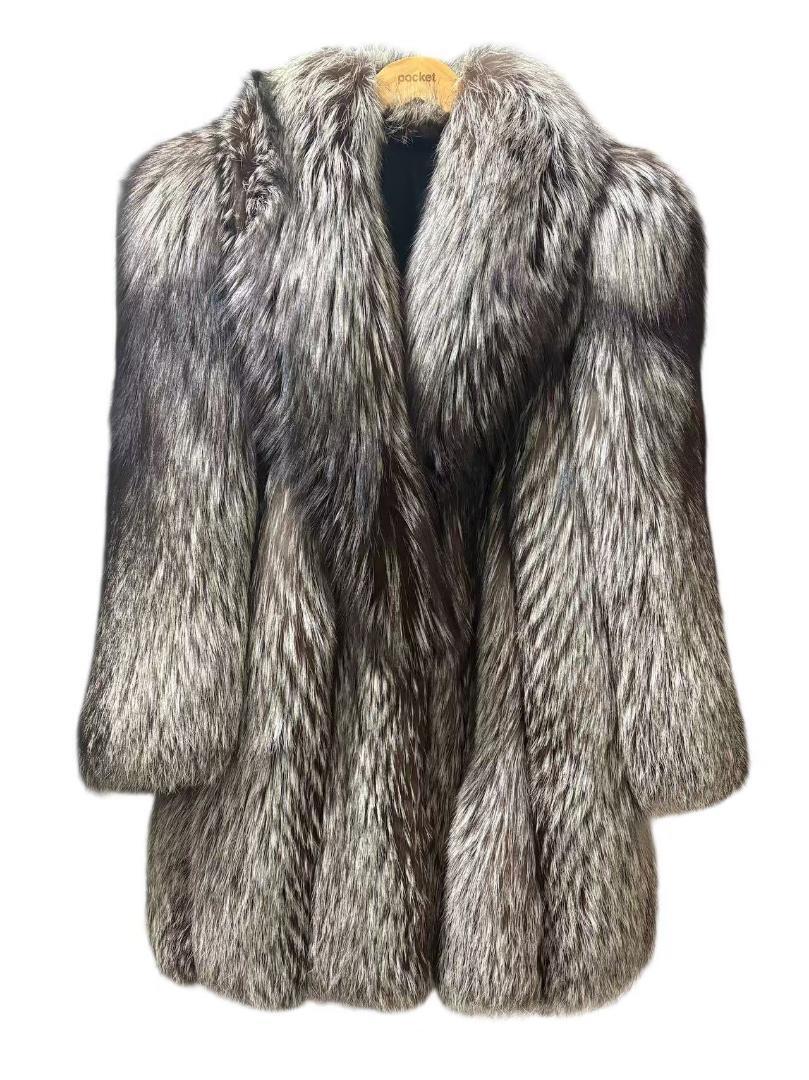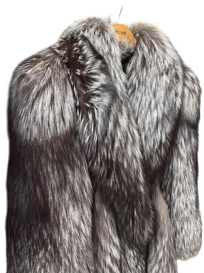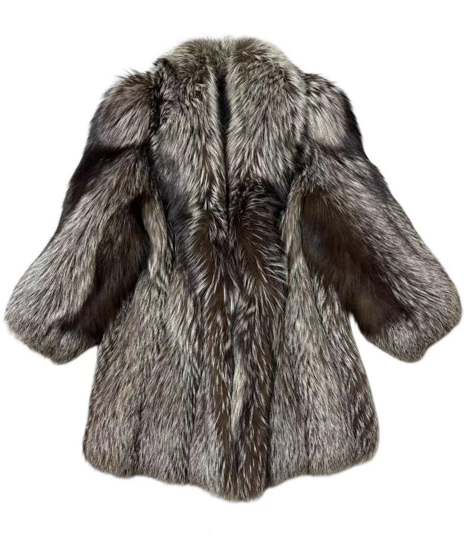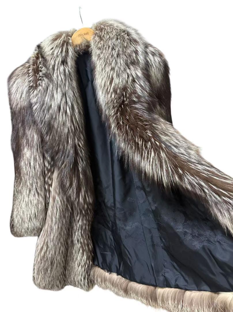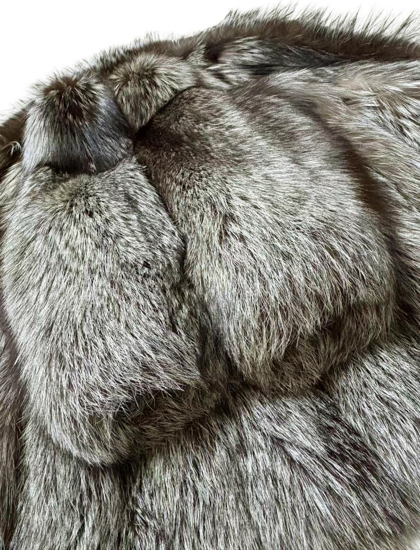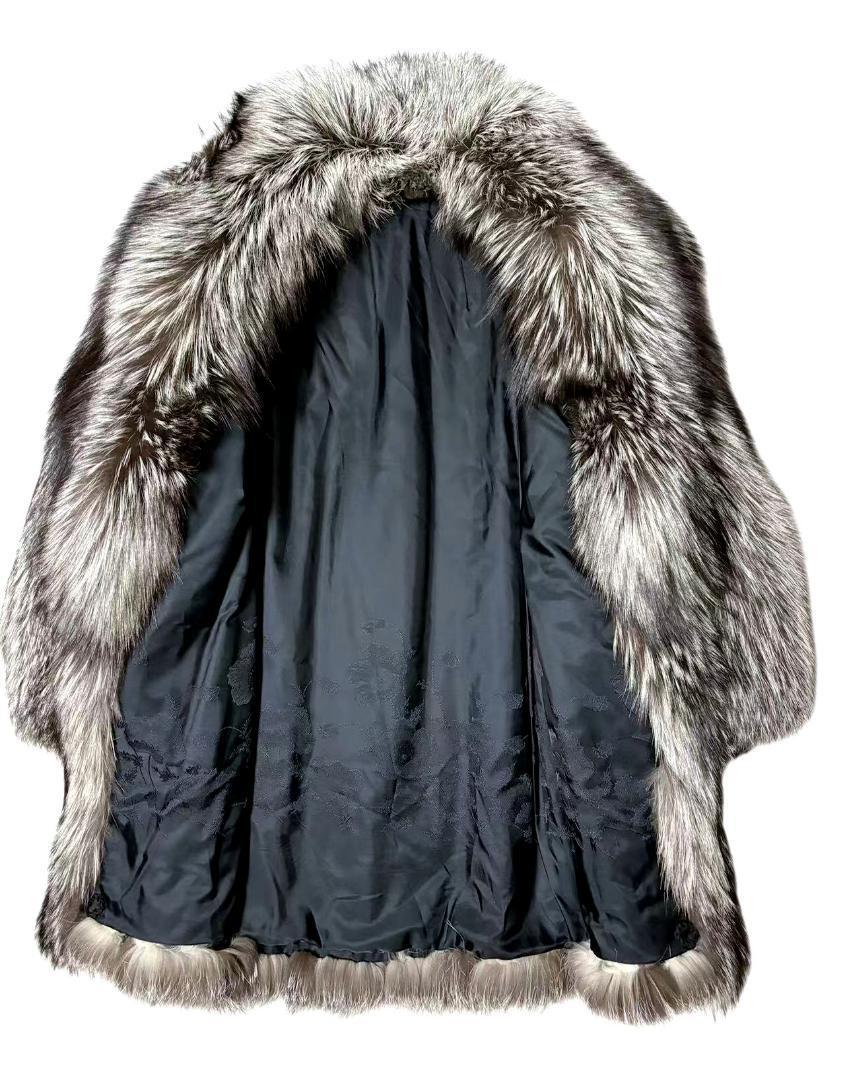 美品 フォックスファー 毛皮 ボリューム◎ 柔らか シルバーフォックス 裏地花柄