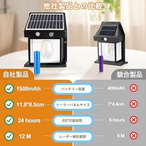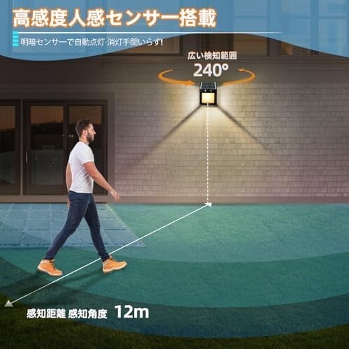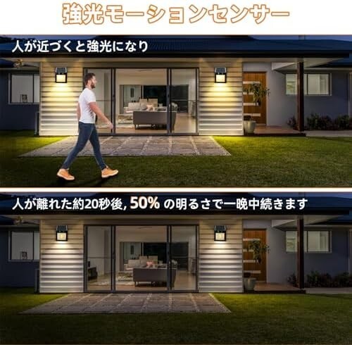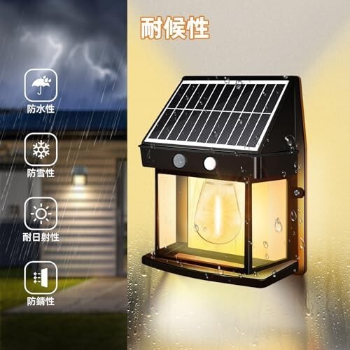 • ソーラー充電: 太陽光で充電し、バッテリー交換不要で環境に優しい設計。昼間は自動充電し、夜間は自動点灯します