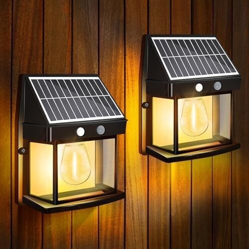 KINGHE ソーラーライト 屋外ウォールライト 門柱灯 ブラケットライト 壁掛け式 自動点灯 玄関 庭 ガーデン ベランダ ガレージ フェンス 小径 前庭 アンティーク レトロ感 おしゃれ 装飾 照明 2個セット