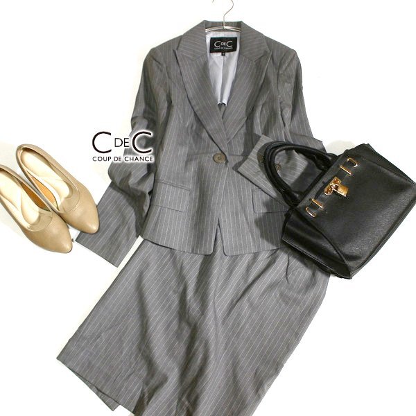 美品 COUP DE CHANCE クードシャンス 綺麗め ピンストライプ スーツ 36号と38号 春 夏 秋 25B08