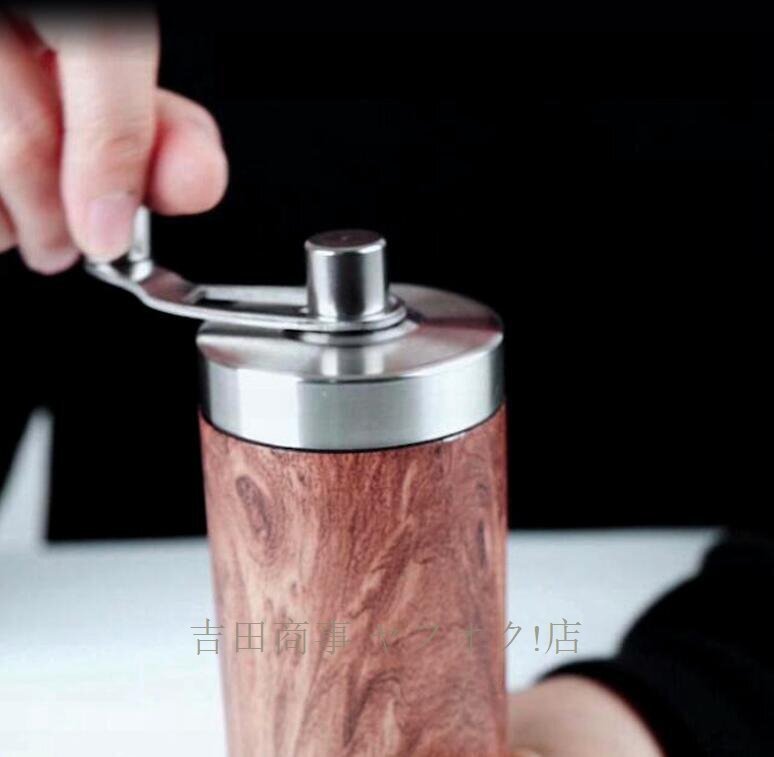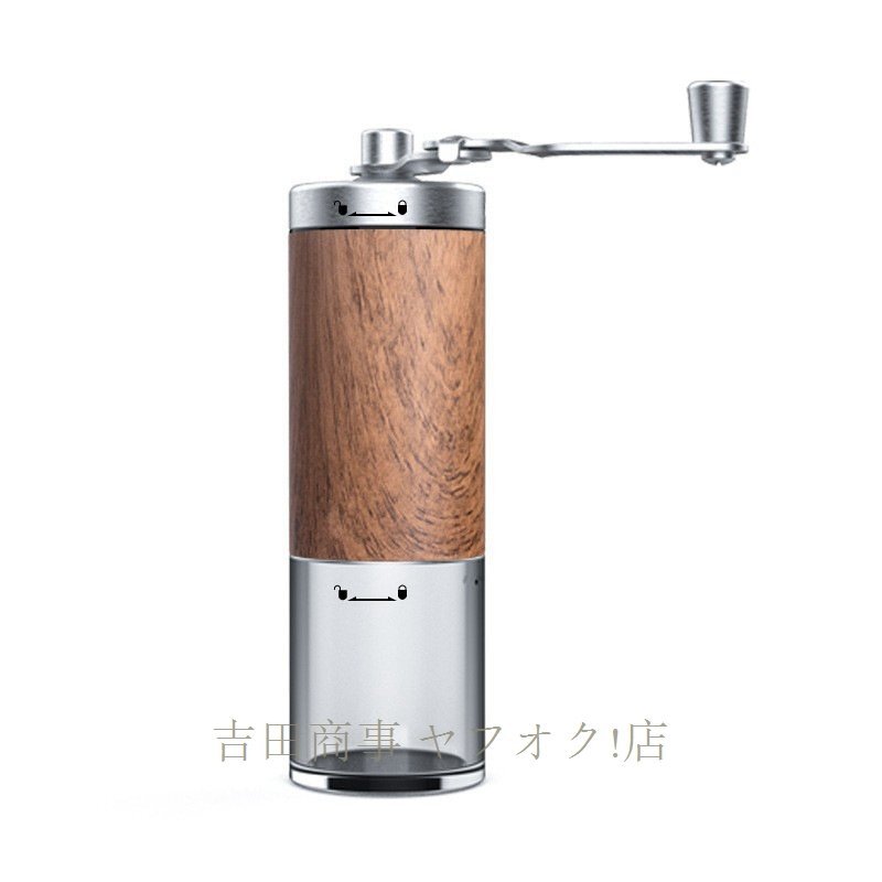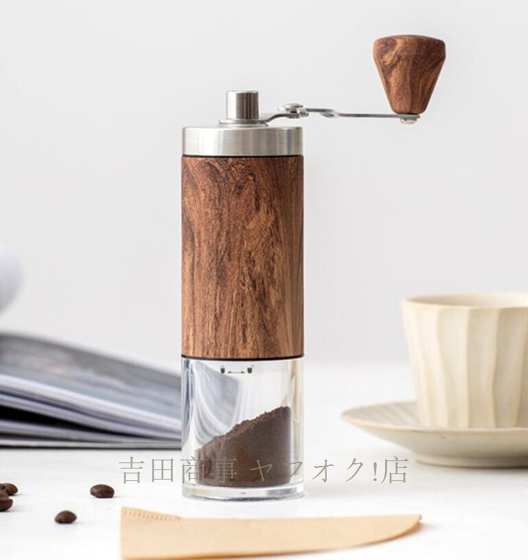 ★新品手挽きコーヒーミル コーヒーミル 豆挽き 木目調 ガラス調 アウトドア キャンプ 粗さ調節 コンパクト 丸洗い