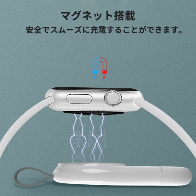 ●マグネットが内蔵され、AppleWatchと引き合い振動などでズレることなく、安定して充電することができます。