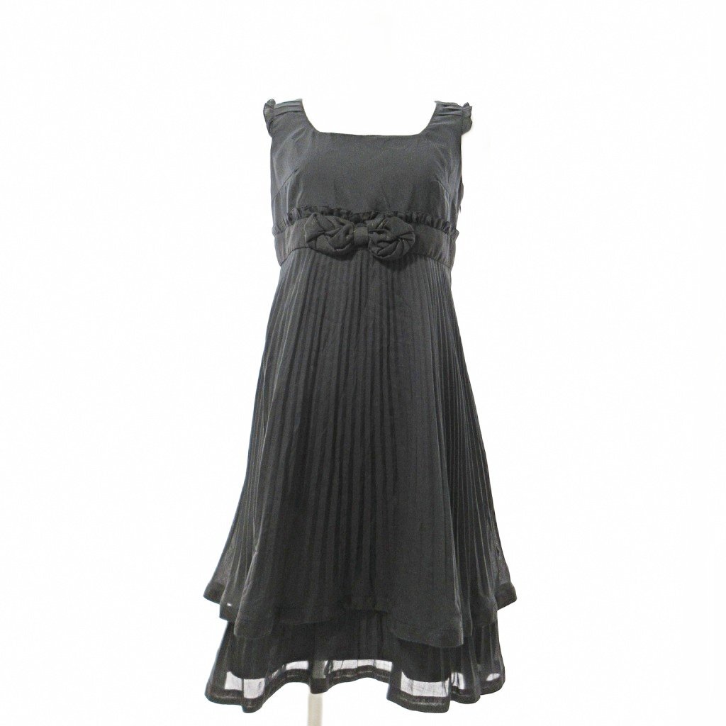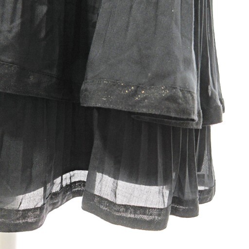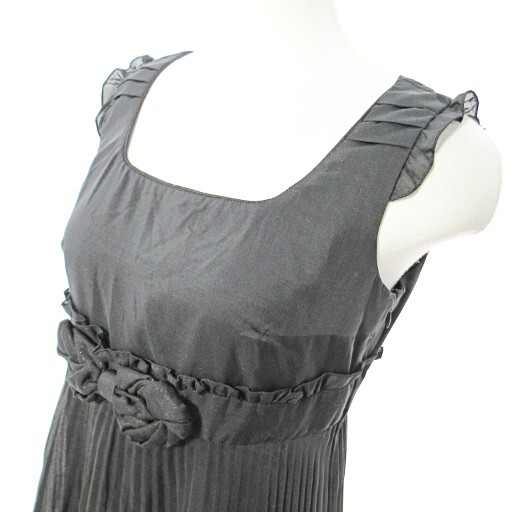 アプワイザーリッシェ Apuweiser-riche プリーツ ワンピース ドレス 膝丈 ノースリーブ フリル リボン レイヤード ラメ 1 黒 ブラック 0912 ■YHS1 レディース