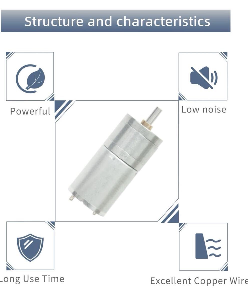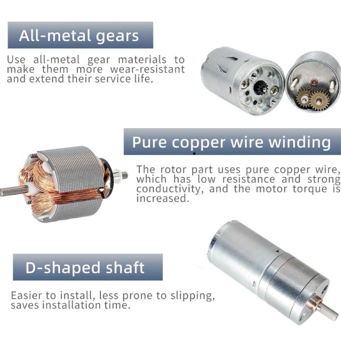 パワフルで静かなパフォーマンス 6-12V DCモーターは、高トルクと低ノイズで350 RPMを供給し、スマートカーのDIYおもちゃに最適です。